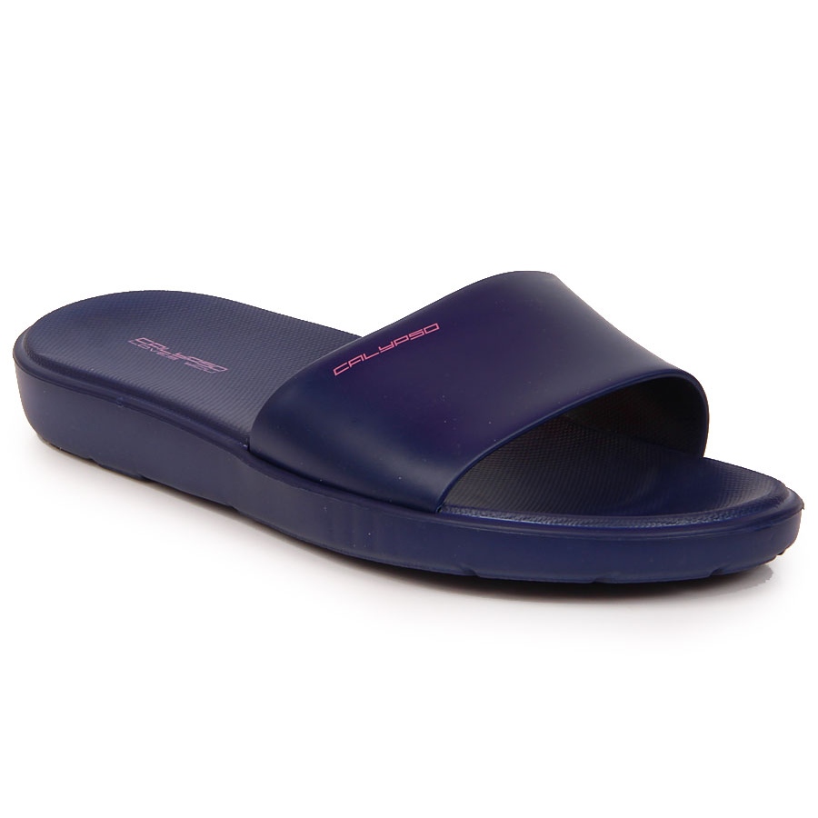 Die marineblauen Calypso-Pool-zehenstegsandalen für Damen sind die perfekte Wahl für jede Frau, die Wert auf Komfort und Stil legt. Diese zehenstegsandalen aus hochwertigem Kunststoff sind leicht und angenehm zu tragen, perfekt für Sommertage. Die marineblaue Farbe sorgt für Eleganz und das Slip-On-Design ermöglicht ein schnelles und bequemes An- und Ausziehen.