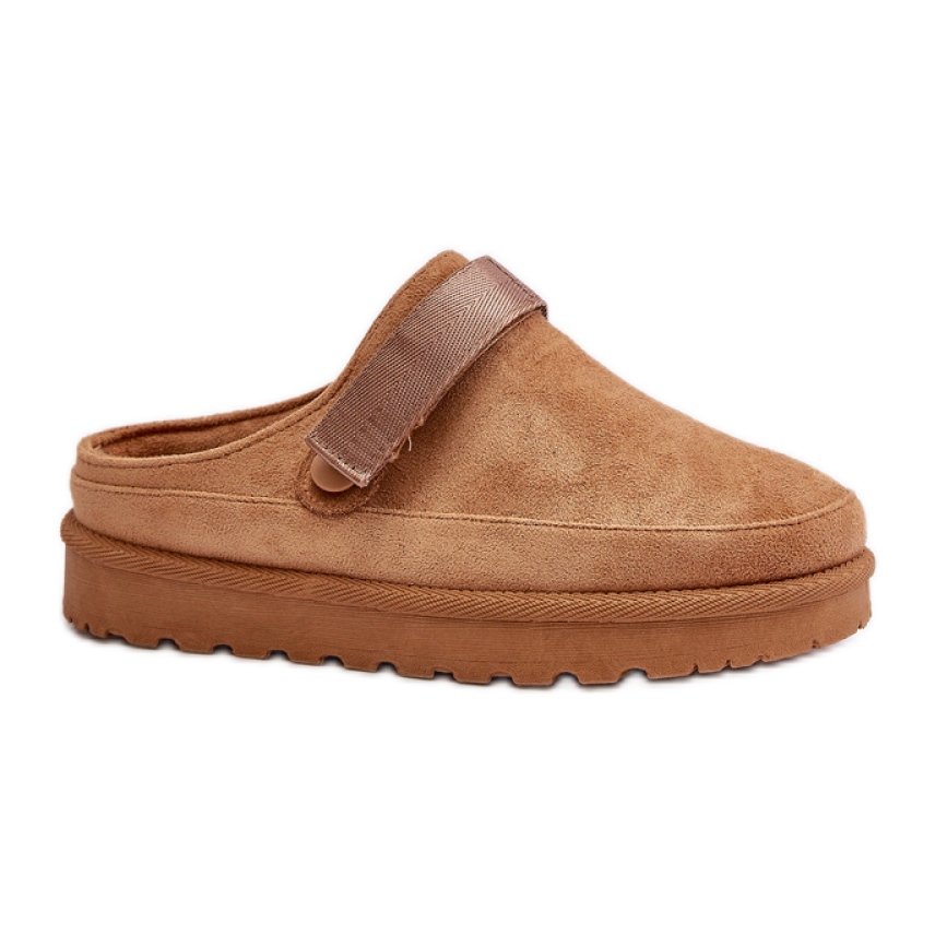 Hier sind Frauenschuhe auf der Kamelplattform in Brown - eine perfekte Kombination aus Stil und Komfort! Diese Flip -Flops aus hochwertigem Öko -Wildleder sind dank des isolierten Innenraums mit einem angenehmen Fell perfekt für kühlere Tage.