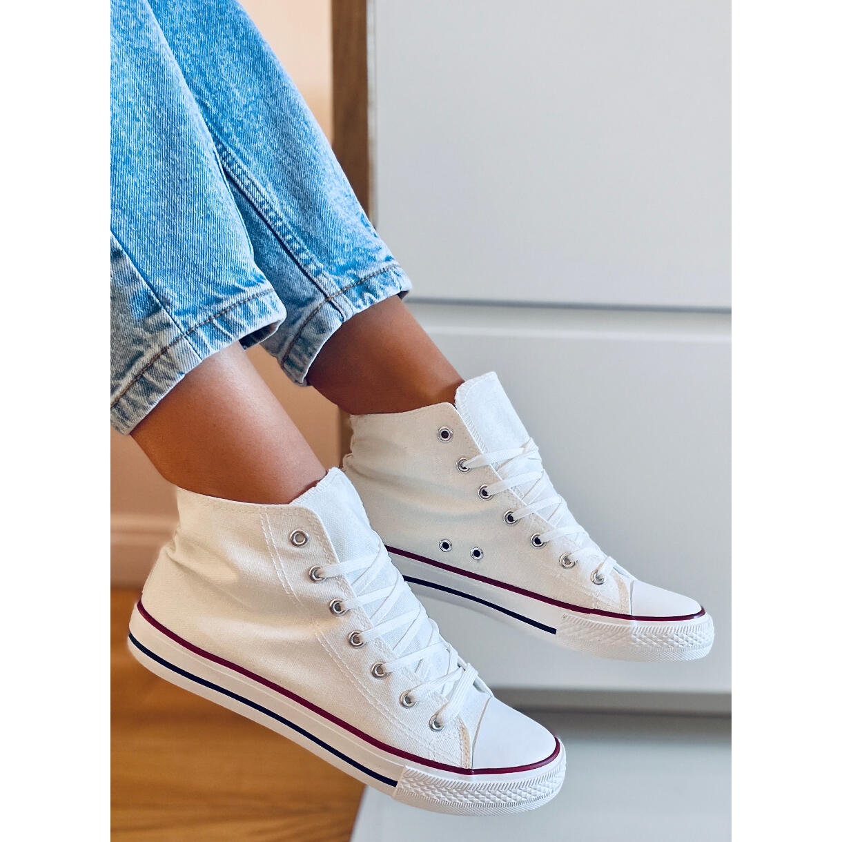 Wir präsentieren Jude White High-Top-Sneakers aus Canvas in klassischem Weiß, die in keiner Damengarderobe fehlen sollten. Diese zeitlosen Schuhe vereinen modisches Design und Komfort und sind somit die perfekte Wahl für den täglichen Gebrauch.