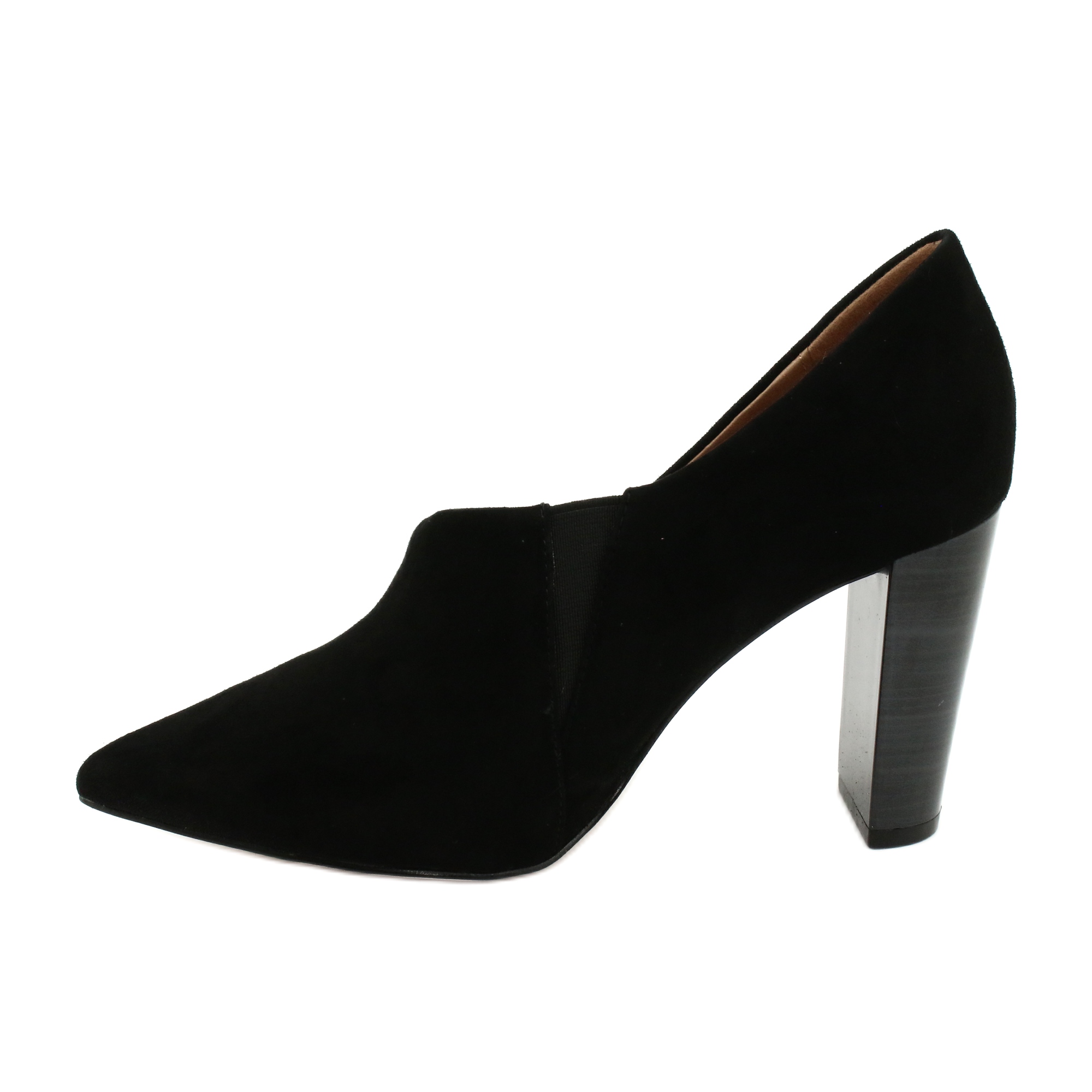 Elegante Frauen schwarze Schuhe in Schwarz (schwarzes Wildleder) ist eine Kombination aus klassischer Form und Komfort. Sie bestehen aus natürlichen Nubuck -Leder mit einer komplett Lederfutter und einem weichen Einsatz und bieten den ganzen Tag aus Komfort. Eine schlanke, spitze Nase und ein hochwertiges Finish verleihen ihnen einen Stil und eine stabile Ferse etwa 8 cm hohe, subtil schlanker Figur.