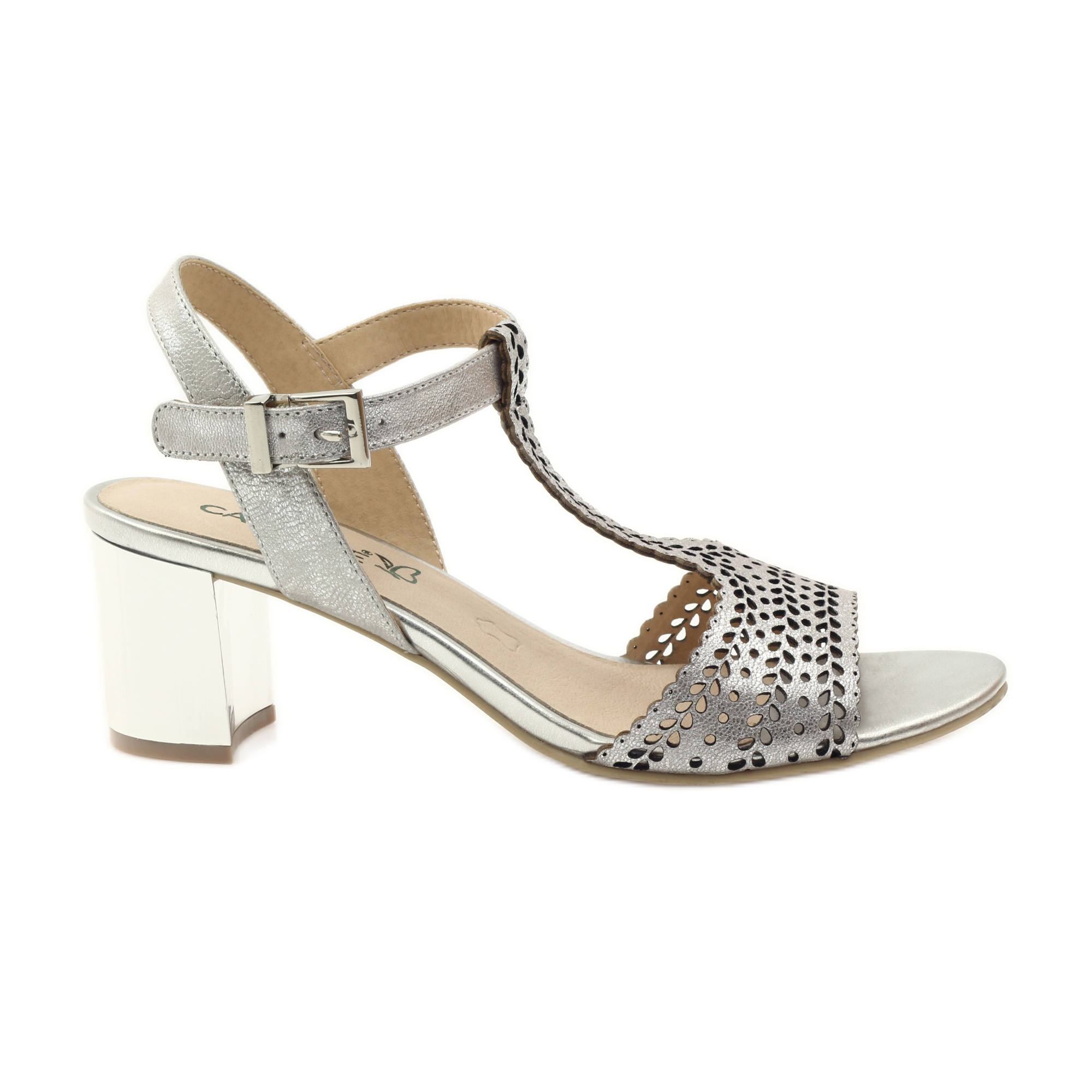 Die durchbrochenen Sandalen Caprice 28301 in einem modischen silbergrauen Farbton sind ein Angebot für Frauen, die Wert auf Eleganz und Komfort legen. Diese klassischen Sandalen aus Naturleder vereinen hohe Qualität mit einzigartigem Stil. Ihr 6,5 Zentimeter hoher metallisierter Absatz verleiht Charme, betont die Figur und sorgt gleichzeitig für Stabilität beim Gehen.