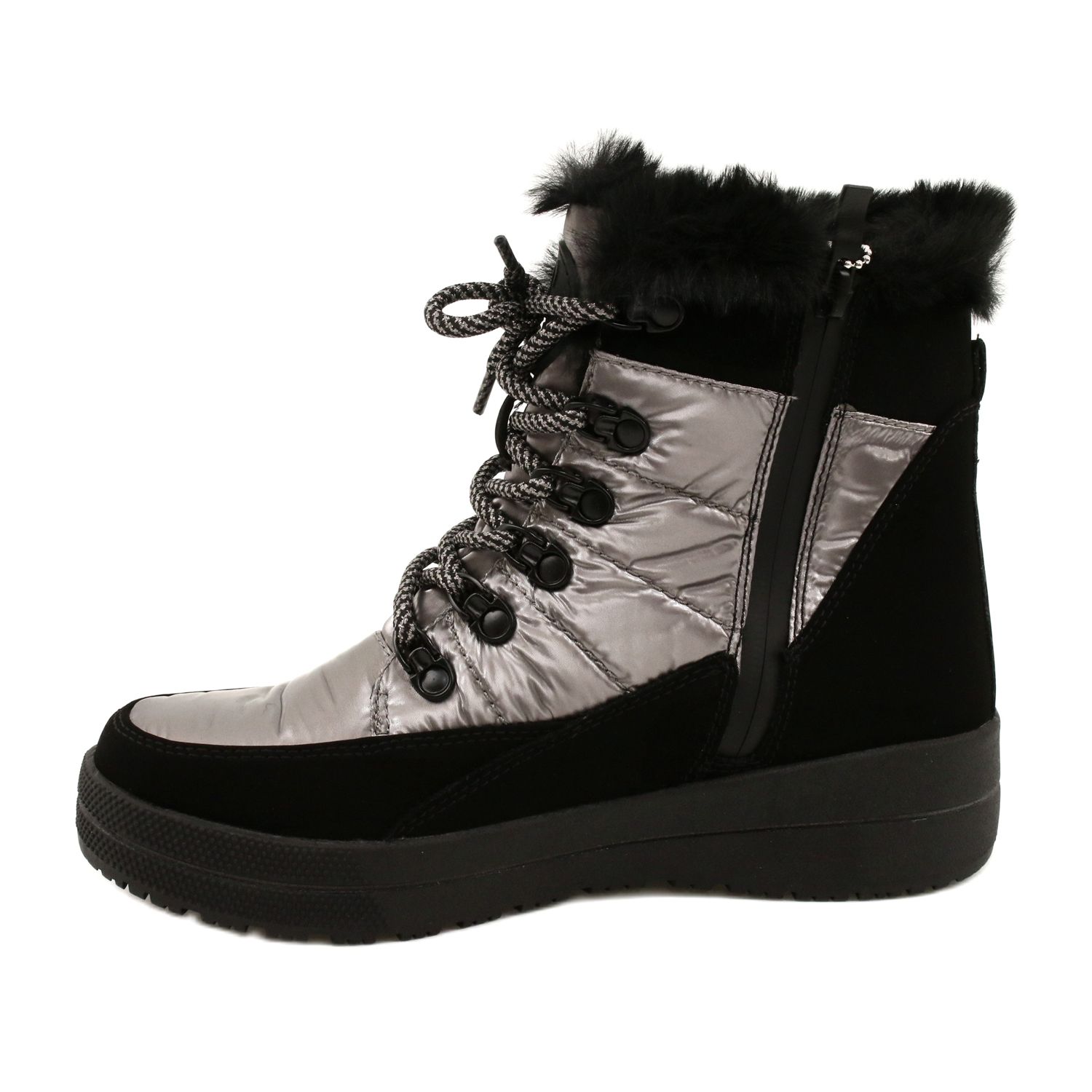 Stylish, Sport Snow Boots Caprice 26240-29 032 in einer eleganten Kombination aus Schwarz und Taupe. Hergestellt aus wasserdichtem Material mit einer Texbeschichtung und isoliert mit weichem Fell, sorgen Sie für Trockenheit, Wärme und Komfort an kalten Tagen. Das moderne Design wurde durch praktische Lösungen ergänzt - Schnürung, Reißverschluss und abnehmbare Einsatz. Eine stabile, dicke Sohle mit einem Profil isoliert vor der Kälte und hält sich an rutschigen Oberflächen.