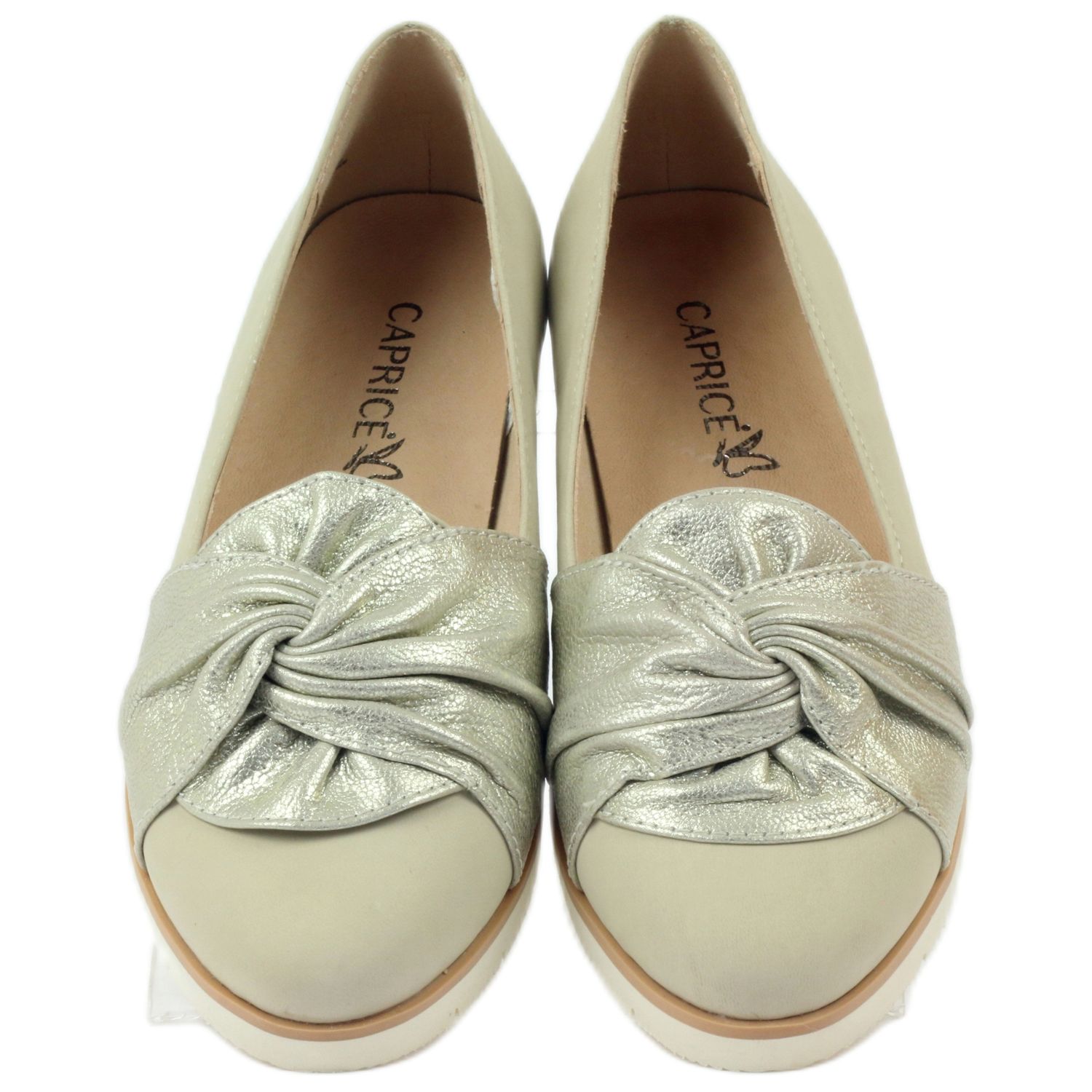 Damenpumps Caprice-Muster. 24607 in Beige- und Goldtönen ist eine ausgezeichnete Wahl für Frauen, die jeden Tag Wert auf Eleganz und Komfort legen. Diese Schuhe sind aus hochwertigem Naturleder gefertigt und vereinen Ästhetik und Komfort, was sie zu einer perfekten Ergänzung für jedes Styling macht.