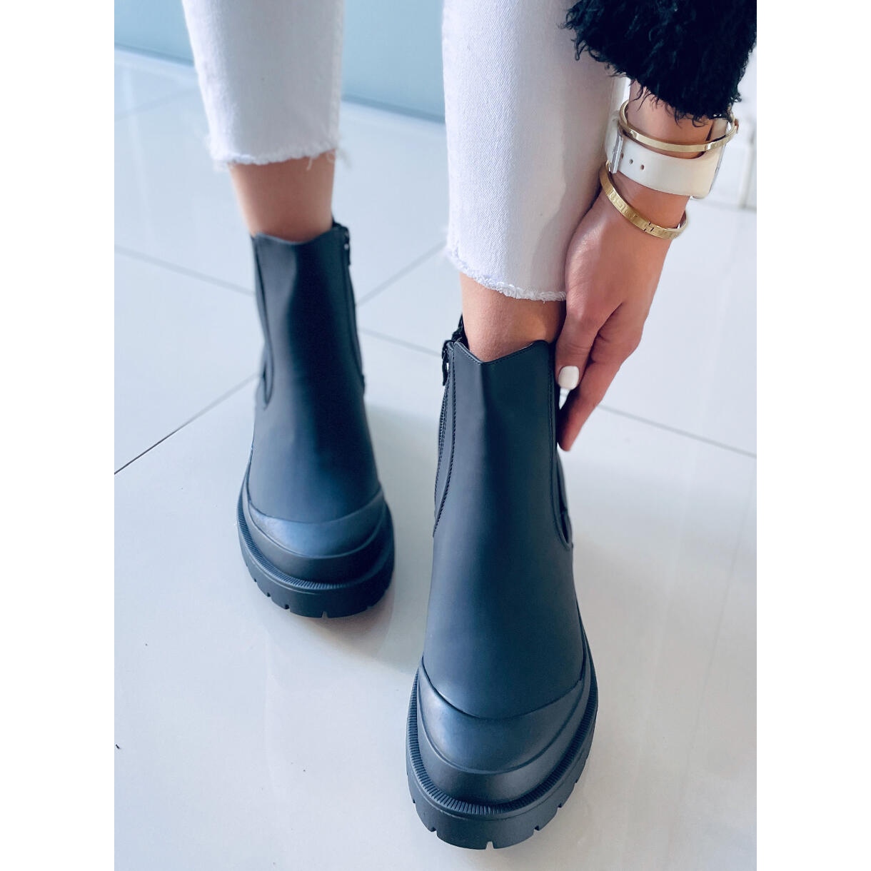 Sie sind aus hochwertigem ökologischem Leder gefertigt und sehen dank ihrer matten Oberfläche äußerst stilvoll aus. Ein praktischer Reißverschluss und ein flexibler Gummieinsatz erleichtern das Anziehen, die runde Spitze sorgt für dezente Raffinesse. Diese Stiefeletten reichen bis über den Knöchel und eignen sich daher perfekt für das Tragen an kälteren Tagen.