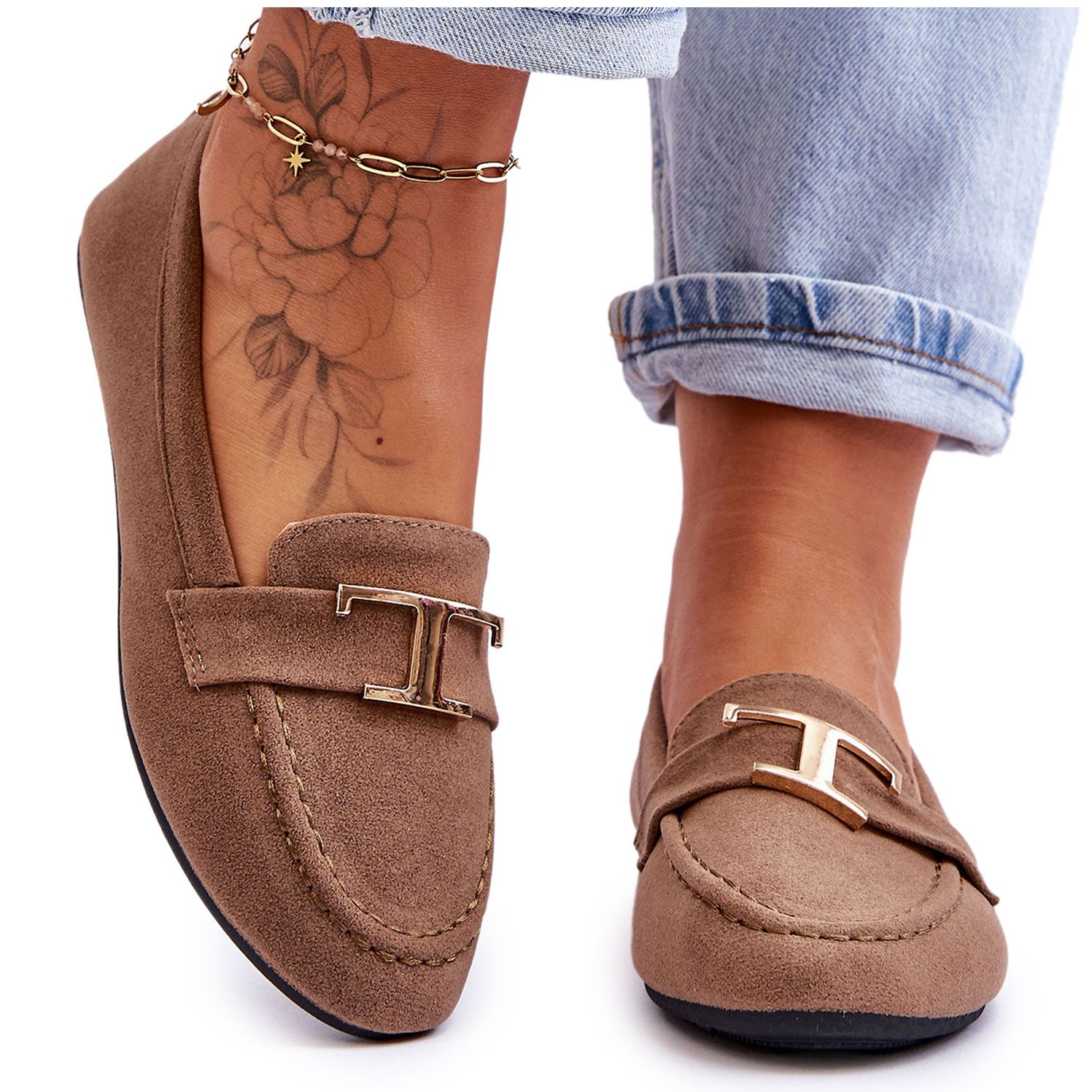 Klassische Slip -In Carly Moccasins - Beige (Khaki) mit einer Verzierung in goldener Farbe