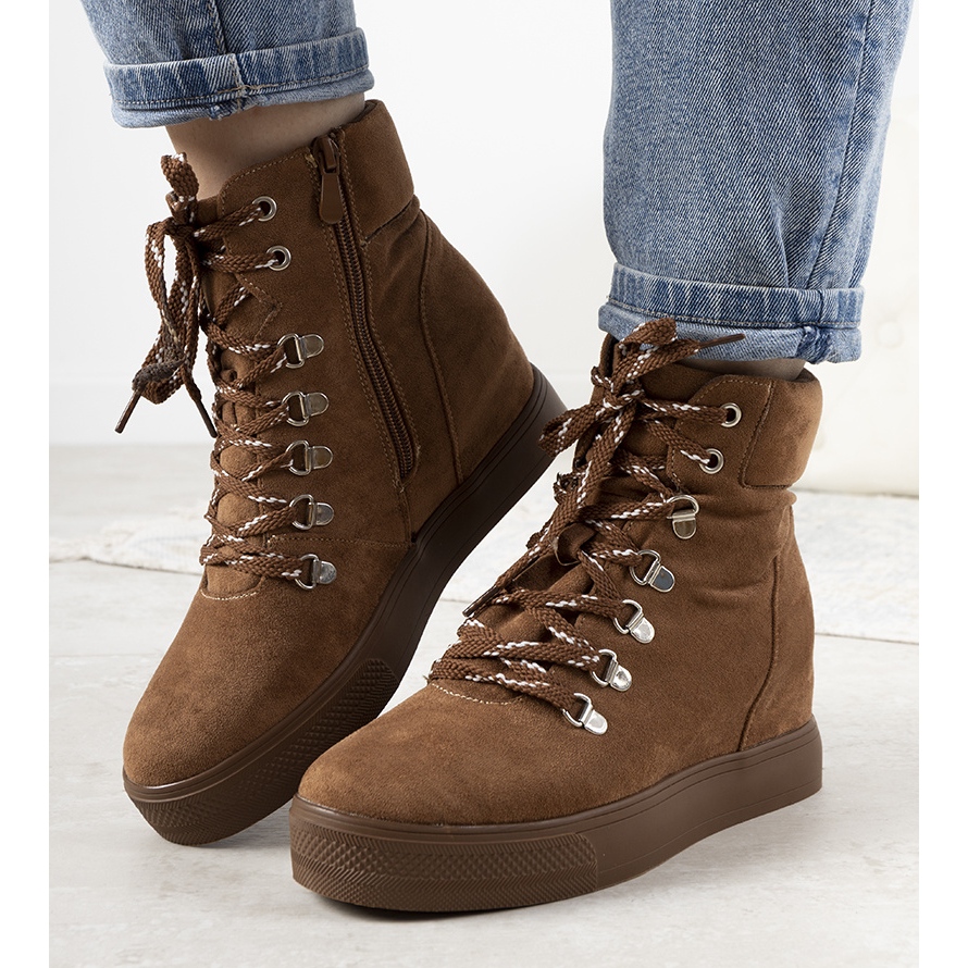 Das Modell Carmona zeichnet sich durch einen versteckten Keilabsatz aus, der die Beine dezent hervorhebt und gleichzeitig für Alltagskomfort sorgt. Dank der interessanten Schnürung im Trekking-Stil verleihen diese Schuhe jedem Outfit Charakter und Originalität. Die Sneaker sind mit einer Schuhdecke leicht isoliert, wodurch sie sich perfekt für Winterspaziergänge eignen.
