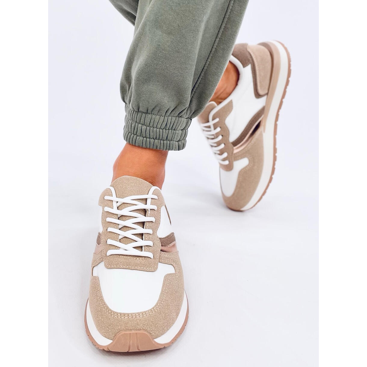 Dank der flachen Ferse und der runden Zehen sind Karthy Khaki -Sneakers eine gute Wahl für Frühlingsspaziergänge oder tägliche Aufgaben. Die Spitze -UP -Verbindungselemente ermöglicht eine perfekte Passform am Fuß, und die niedrige Höhe des Modells macht sie sehr bequem.