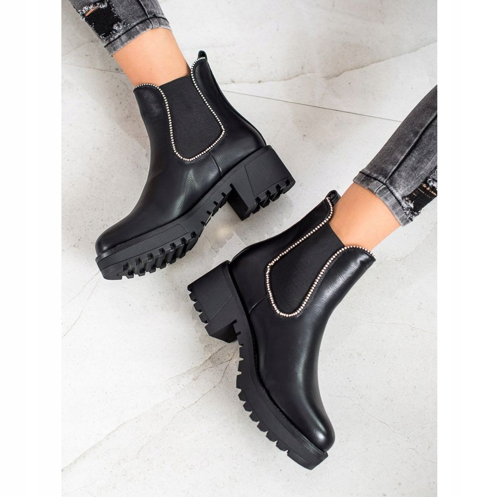 Diese stylischen Stiefeletten mit Details in Form von Strasssteinen und Strasssteinen passen perfekt zu den Trends für die Herbst-/Wintersaison und verleihen Ihrem Alltags-Styling einen rockigen, lässigen oder modischen Charakter. Unabhängig vom Anlass eignen sich die Chelsea-Stiefel von SHELOVET sowohl für den Alltag als auch für besondere Anlässe.