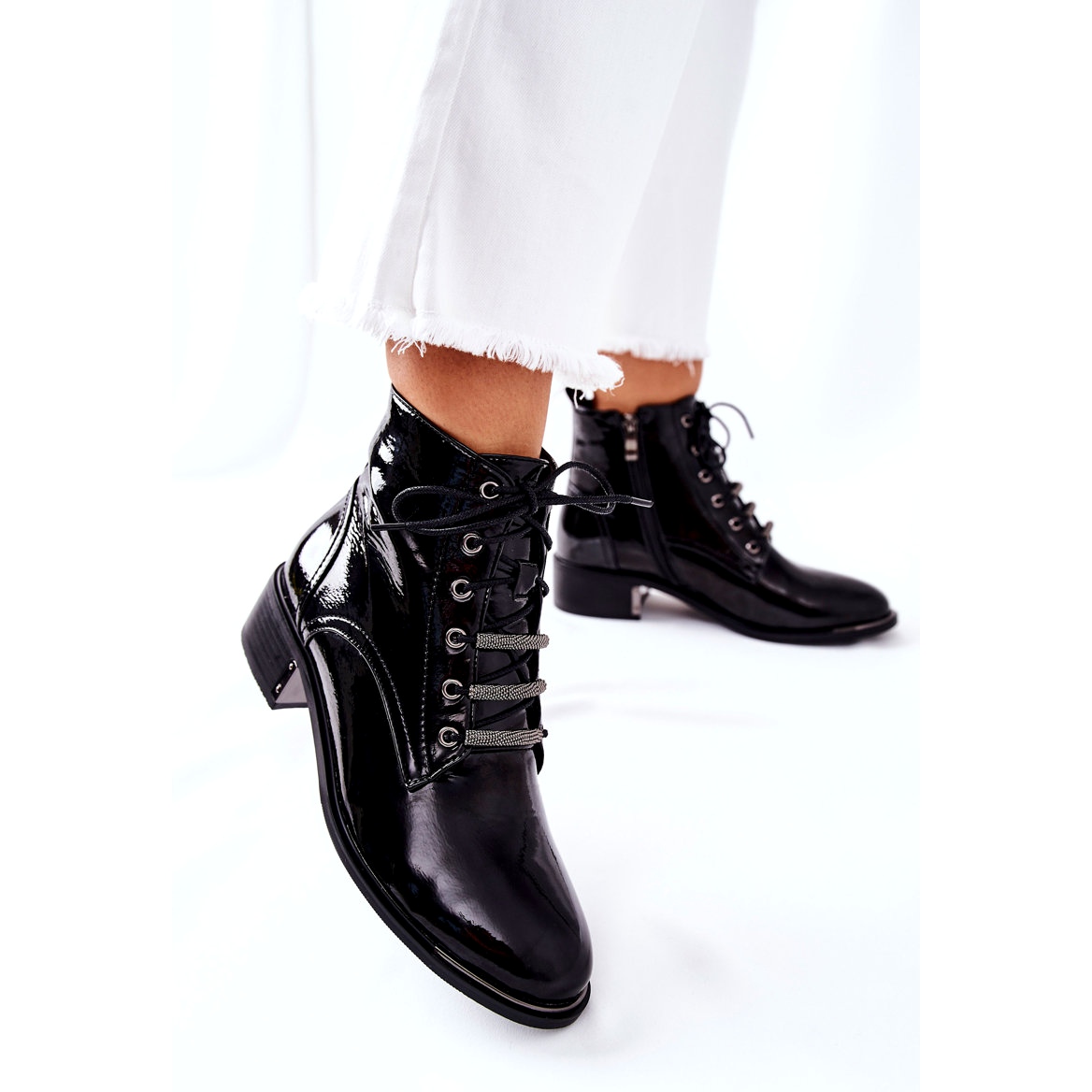 Details: D&A Classic Damen Warme Stiefel Lackiert Schwarz Reflection
