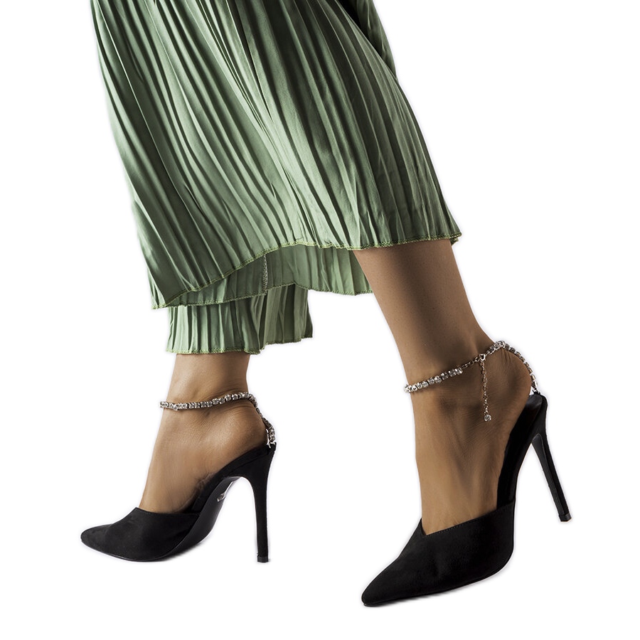 Details: Claude schwarze Sandalen mit Strasssteinabsatz