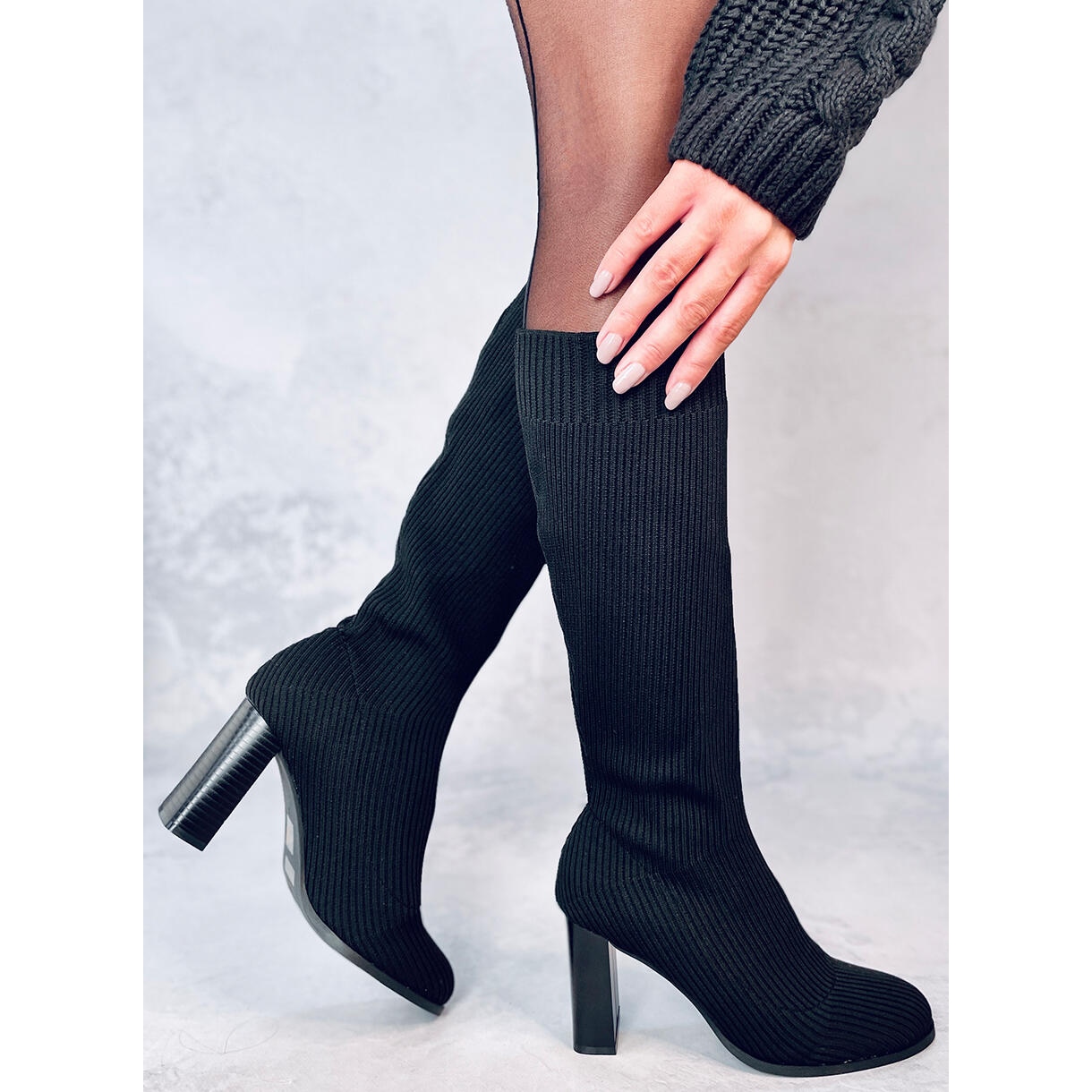 - Modell: Sockenstiefel mit hohem Absatz