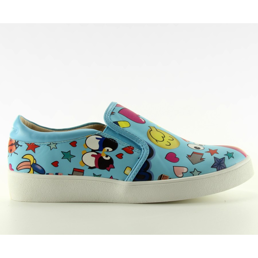 Comic Slipons 6120 Blue – stylische Slip-On-Sneaker in einer intensiven blauen Version. Das energiegeladene, farbenfrohe, vom Comic inspirierte Muster zieht die Blicke auf sich und das glatte, genarbte Faux-Wildleder verleiht ihnen einen modernen Charakter. Perfekt für lässiges und sportliches Styling – bequem, leicht und sehr feminin.
