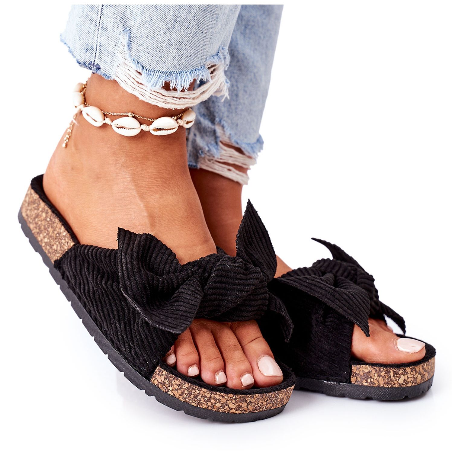 Details: PS1 Cord-Hausschuhe auf schwarzem Sommerkork