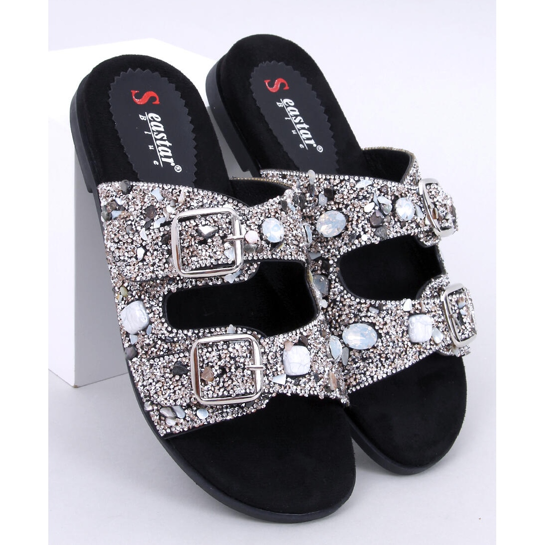 Entdecken Sie den einzigartigen Stil und den Komfort mit zehenstegsandalen mit kultigen schwarzen Steinen! Diese eleganten Wildleder -Pantoffeln sind die perfekte Kombination aus modischem Design und Komfort. Das raffinierte Modell, das mit glänzenden Steinen und Zirkonen verziert ist, wird sicherlich Aufmerksamkeit erregen und jegliche Styling verleihen.