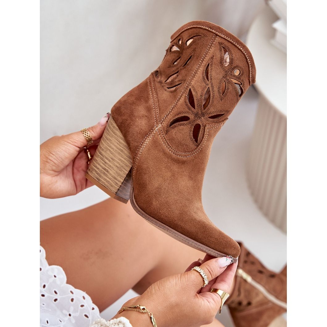 Details: Lewski Shoes Cowboystiefel aus Wildleder mit durchbrochenem Muster Lewski 3612 Braun beige
