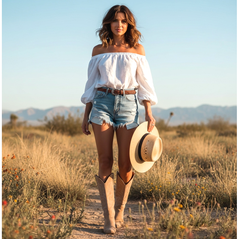 Cowboystiefel sind die perfekten Schuhe für die Übergangszeit und den Sommer. Erfahren Sie, wie Sie sie mit luftigen Boho-Kleidern und Shorts kombinieren, um einen modischen Festival-Look zu kreieren.