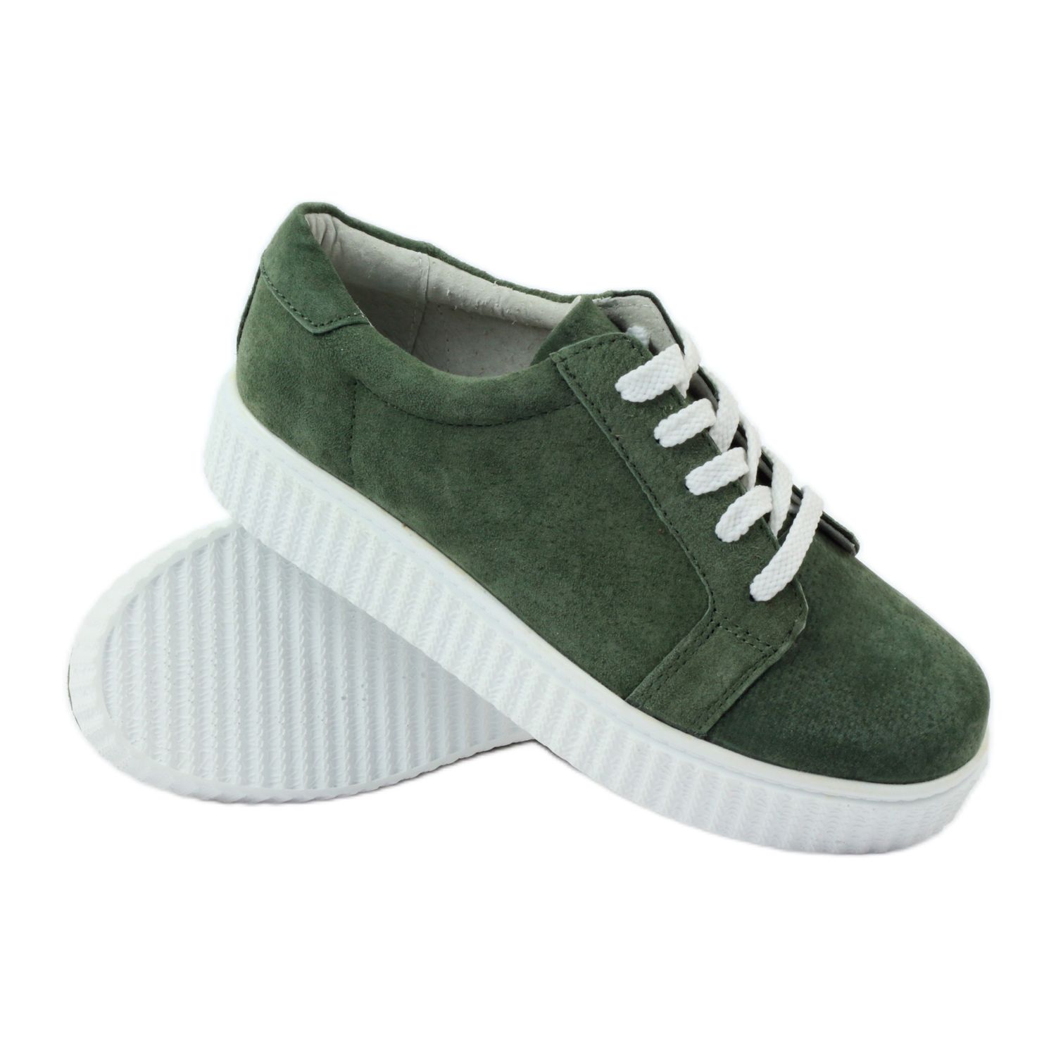 Creepersy Filippo 036 grüne Lederschuhe sind die perfekte Wahl für alle Frauen, die an wärmeren Tagen Komfort mit einem raffinierten Stil kombinieren möchten. Diese einzigartigen Schuhe der renommierten Marke Filippo zeichnen sich durch eine hochwertige Verarbeitung aus. Das Obermaterial und die Innenseite der Schuhe bestehen aus natürlichem Wildleder, was nicht nur für Langlebigkeit, sondern auch für Tragekomfort sorgt.