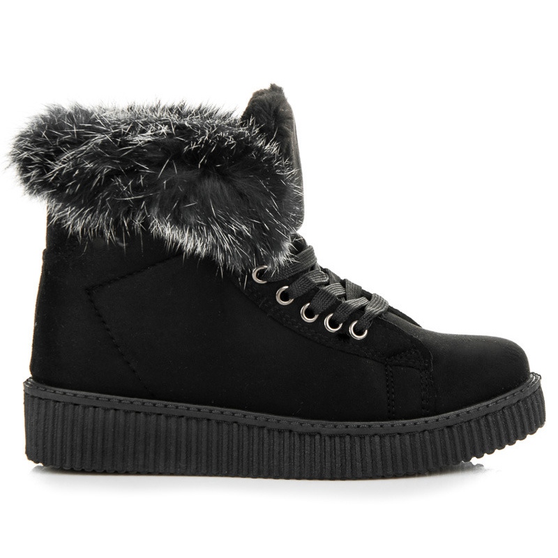Gruselige Stiefel mit Fell in Schwarz sind die perfekte Wahl für kalte Tage und vereinen Komfort und Stil. Diese modischen Schuhe sind ein Must-Have in der Garderobe jeder Frau und passen perfekt zu den Trends der Herbst- und Wintersaison. Aus ökologischem Wildleder gefertigt, sehen sie elegant und modern aus und ihr aufgerolltes Fell verleiht Charme und einen jugendlichen Charakter.