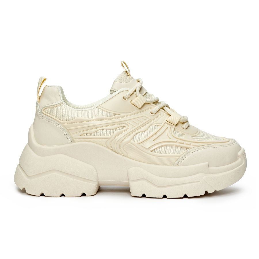 Sneakes in einem wunderschönen beige Farbton passt perfekt in aktuelle Sporttrends und Mode, was sie zu einer großartigen Ergänzung zu jeder Stylisierung macht - von alltäglichen, lässigen Outfits bis hin zu eleganteren Sets. Dank der 4 cm hohen Plattform erhalten Sie eine zusätzliche Höhe, ohne den Komfort aufzugeben.