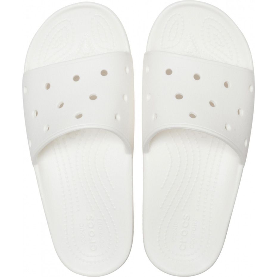 Crocs Classic Slide zehenstegsandalen sind gleichbedeutend mit Leichtigkeit und alltäglichem Komfort. Perfekt für den Strand, in die Stadt und zum Entspannen zu Hause - dank der Lüftungslöcher leicht zu reinigen, dank Croslite ™ Foam und luftig. Das minimalistische, reibungslose Design in universeller Weiß bedeutet, dass sie vielen Sommerstilisationen entsprechen.