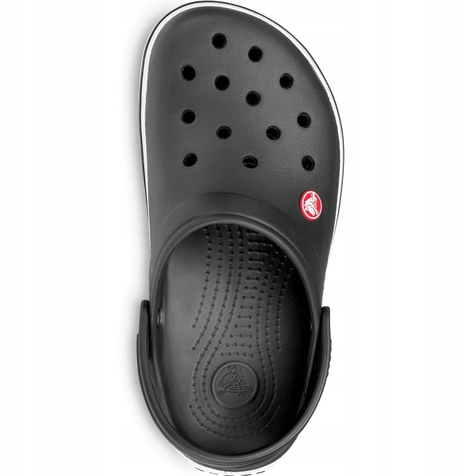 Classic Black Crocband ist ein universelles Modell, das während des Urlaubs, auf der Handlung, am See und als komfortable Heimschuhe funktioniert. Sie bestehen aus patentiertem Croslite® -Material und garantieren Leichtigkeit, Wasserbeständigkeit und einfache Reinigung. Der profilierte Einsatz passt sich dem Fuß an und das perforierte Obermaterial lüftet eine Belüftung - perfekt für warme Tage.