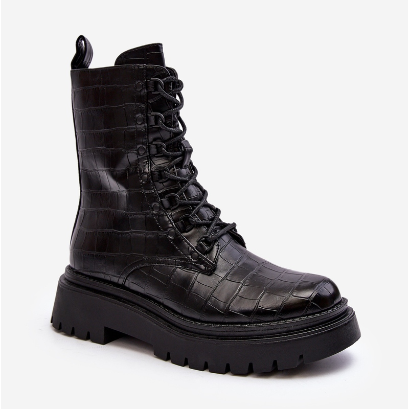 Details: Damen-Arbeiterstiefel mit dekorativer Prägung Black Tarolia schwarz