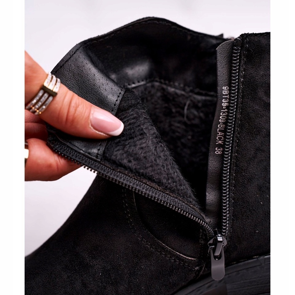 Entdecken Sie den außergewöhnlichen Stil und den Komfort mit Cowboy -Stiefeln für Frauen Evento! Diese eleganten schwarzen Schuhe kombinieren klassisches Erscheinungsbild und moderne Lösungen. Sie haben eine zarte flache Ferse mit einer Höhe von 3 cm, was den Komfort des ganzen Tages gewährleistet.