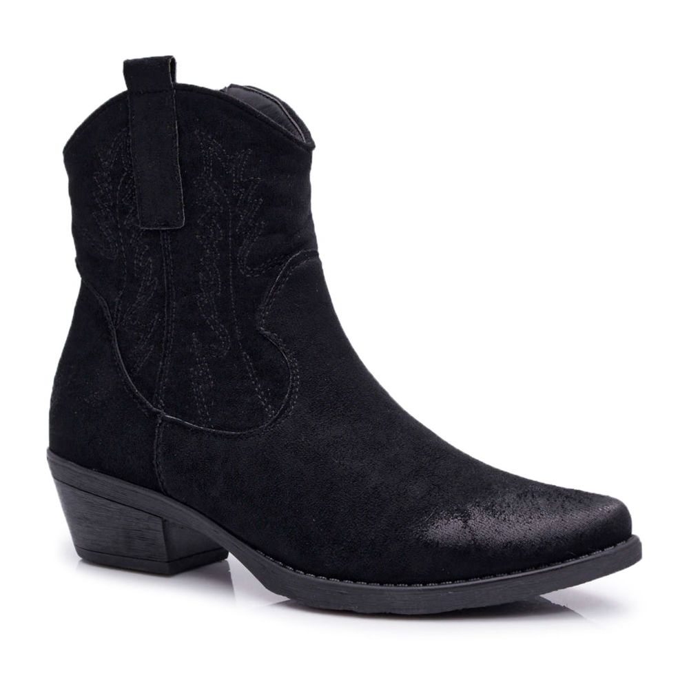 Details: BUGO Damen Cowboystiefel Wildleder Schwarz Ferders