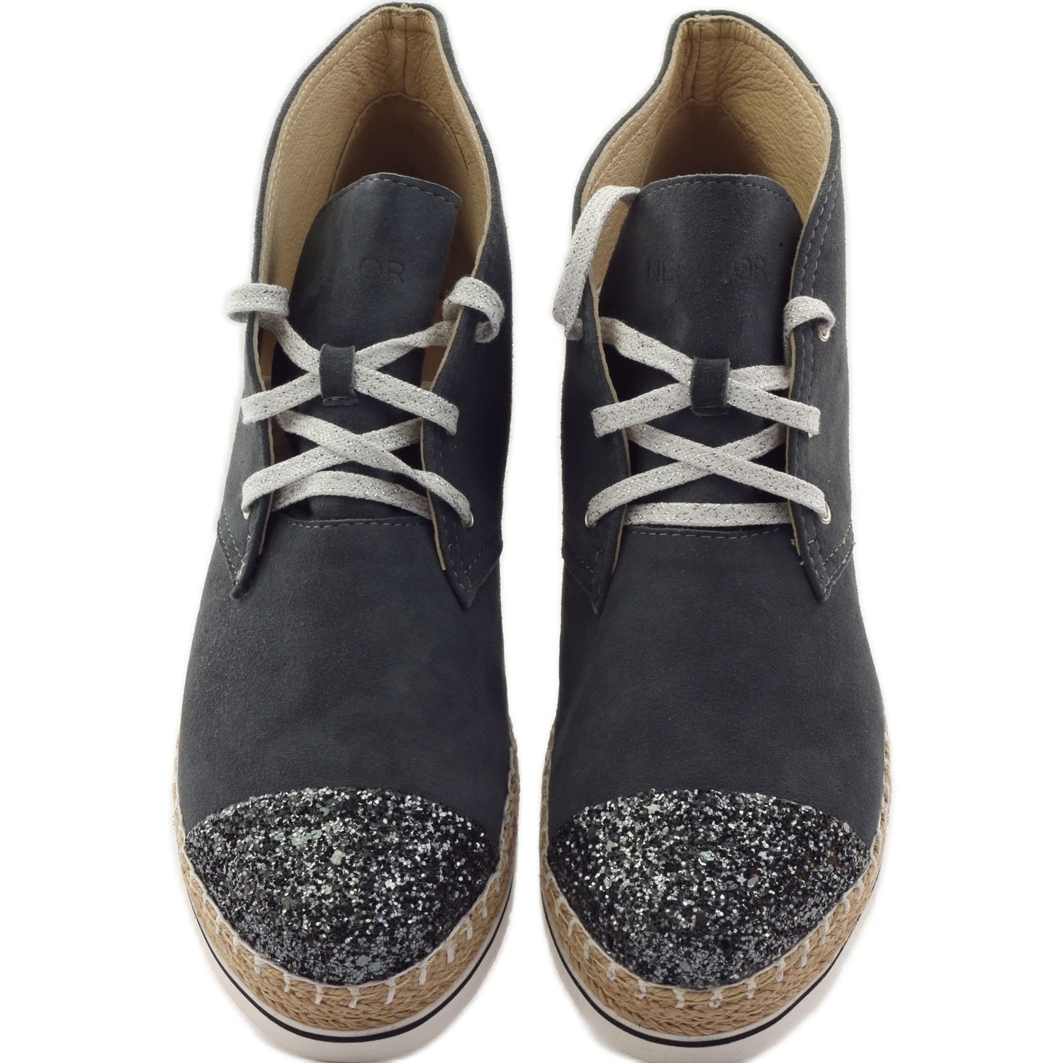 Entdecken Sie Eleganz und Komfort mit den grau/silbernen Leder-Espadrilles Neścior 098-B für Damen. Diese stilvollen Schuhe, die vollständig aus hochwertigem, natürlichem Wildleder gefertigt sind, sind eine perfekte Ergänzung für die Garderobe jeder Frau.