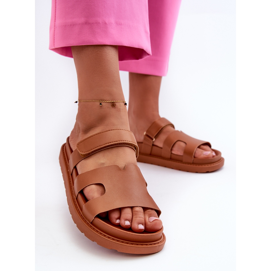 Damen-zehenstegsandalen aus Faux-Wildleder mit Klettverschluss in Braun passen perfekt zu Sommer-Styles und passen durch ihr universelles Design zu fast jedem Outfit. Bemerkenswert ist, dass dieses Modell keine Nase hat, was das Gefühl von Freiheit und Kühle an warmen Tagen erhöht.