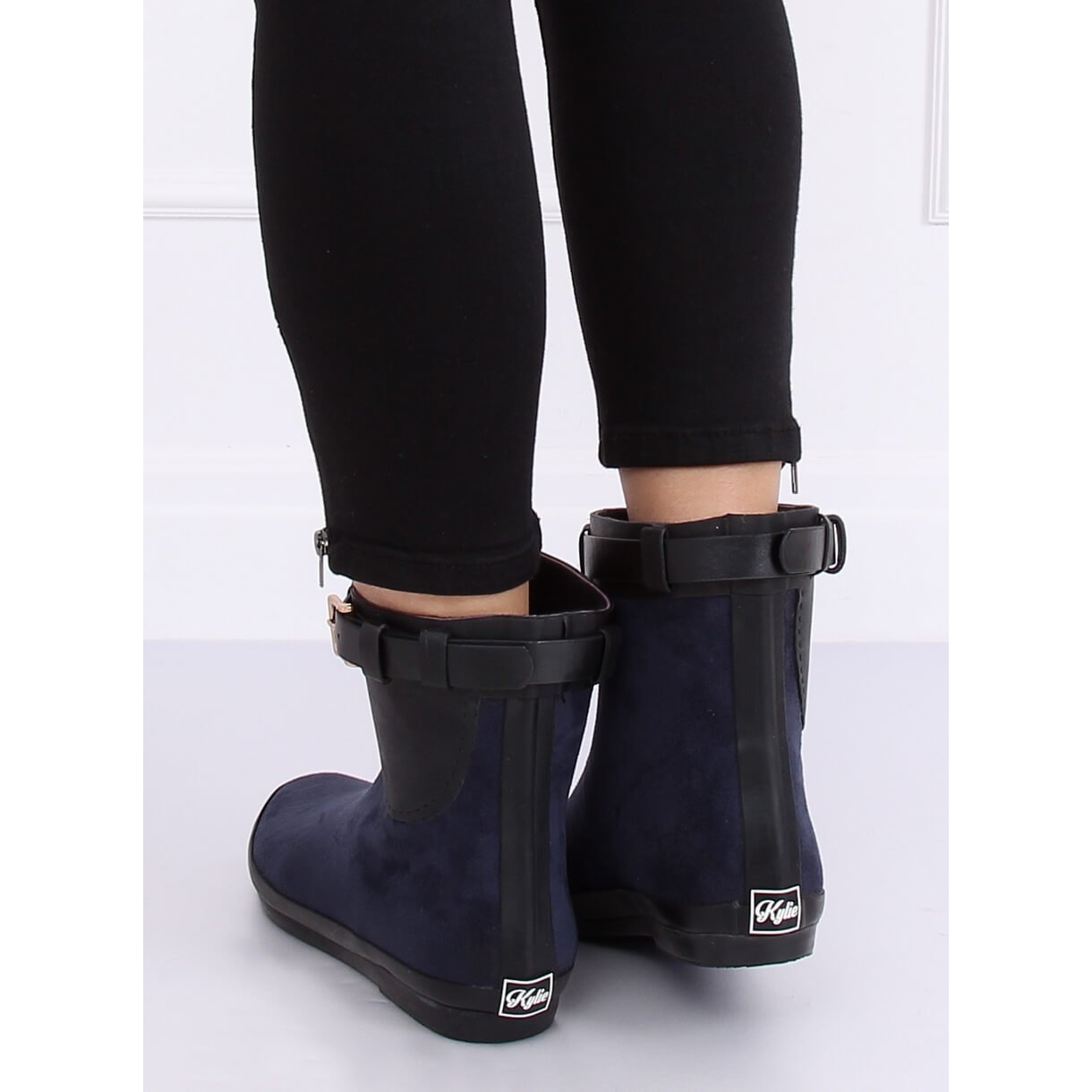 Die Außenfläche der Gummistiefel ist mit ökologischem Wildleder überzogen, was ihnen einen einzigartigen Charakter verleiht und perfekt zu den neuesten Modetrends passt. Ihre klassische dunkelblaue Farbe macht sie äußerst universell – Sie können sie sowohl mit Alltagsstilen als auch mit eleganteren Outfits problemlos kombinieren.