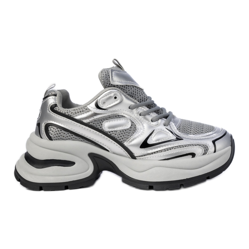 Entdecken Sie neue Frauensport-Sneakers in einem Grau-Silber-Farbton, der perfekt Mode und Komfort verbindet. Diese modernen Schuhe, ideal für alle Gelegenheiten, zeichnen sich durch einen eleganten, aber gleichzeitig Sportstil aus, was sie zu einer großartigen Wahl für alltägliche Stilisierungen macht.
