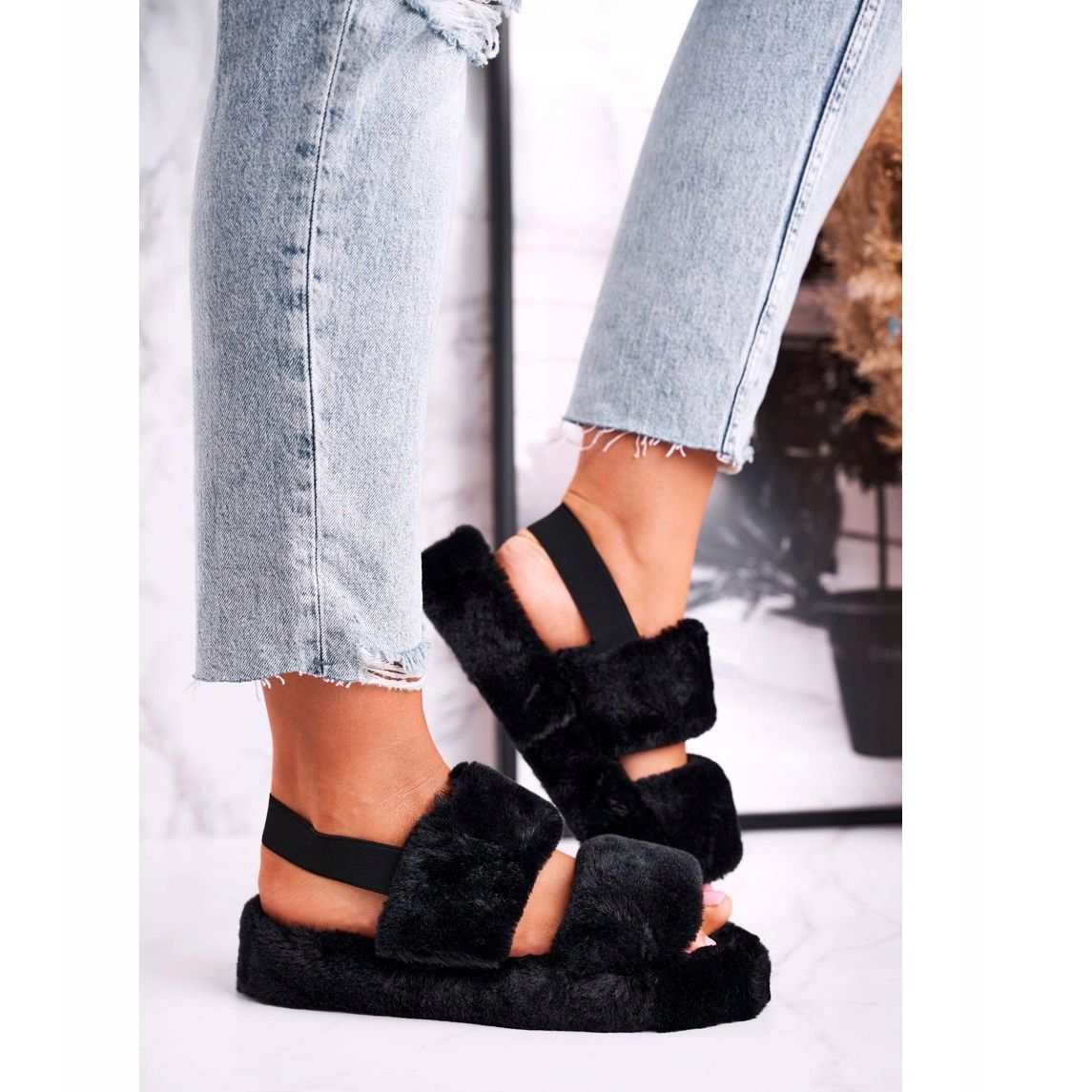 Details: FJ1 Damen Hausschuhe auf dem Plateau Pelz Schwarz Zuckerwatte