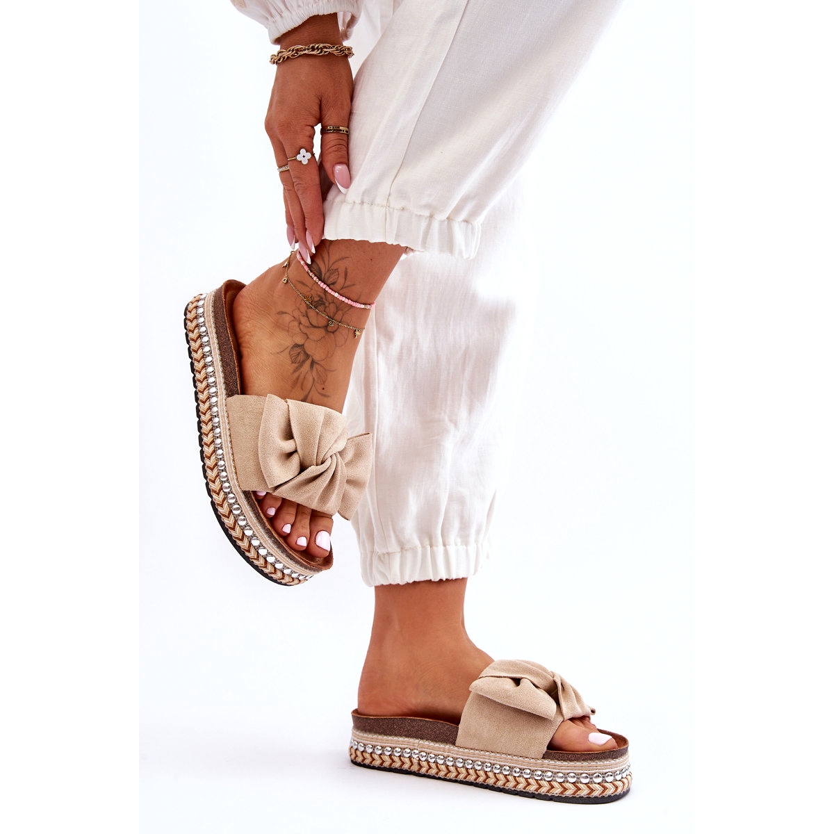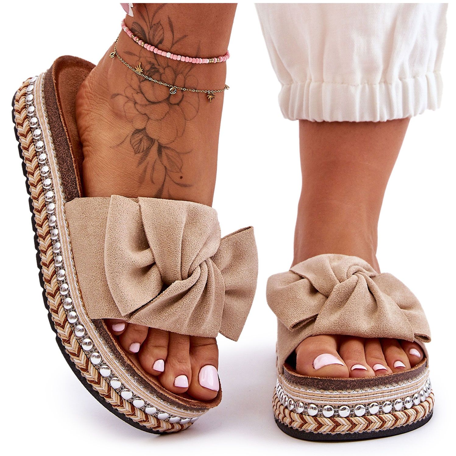 Inna marka Damen-Hausschuhe aus Wildleder mit Schleife Beige Lauria