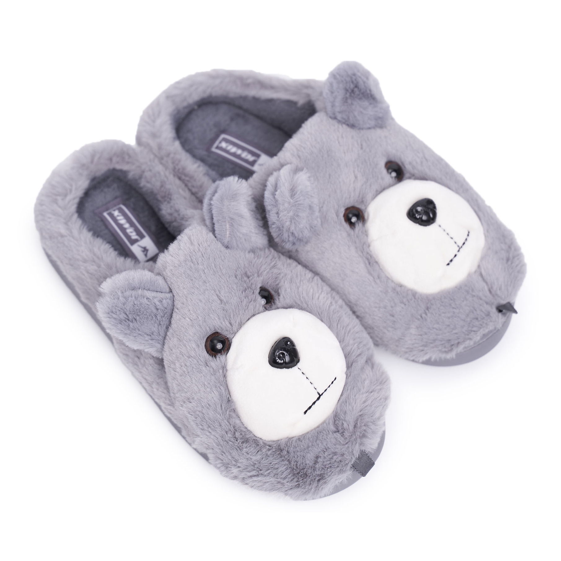 **Graue Bärenhausschuhe für Damen mit Fell – Komfort zu Hause**