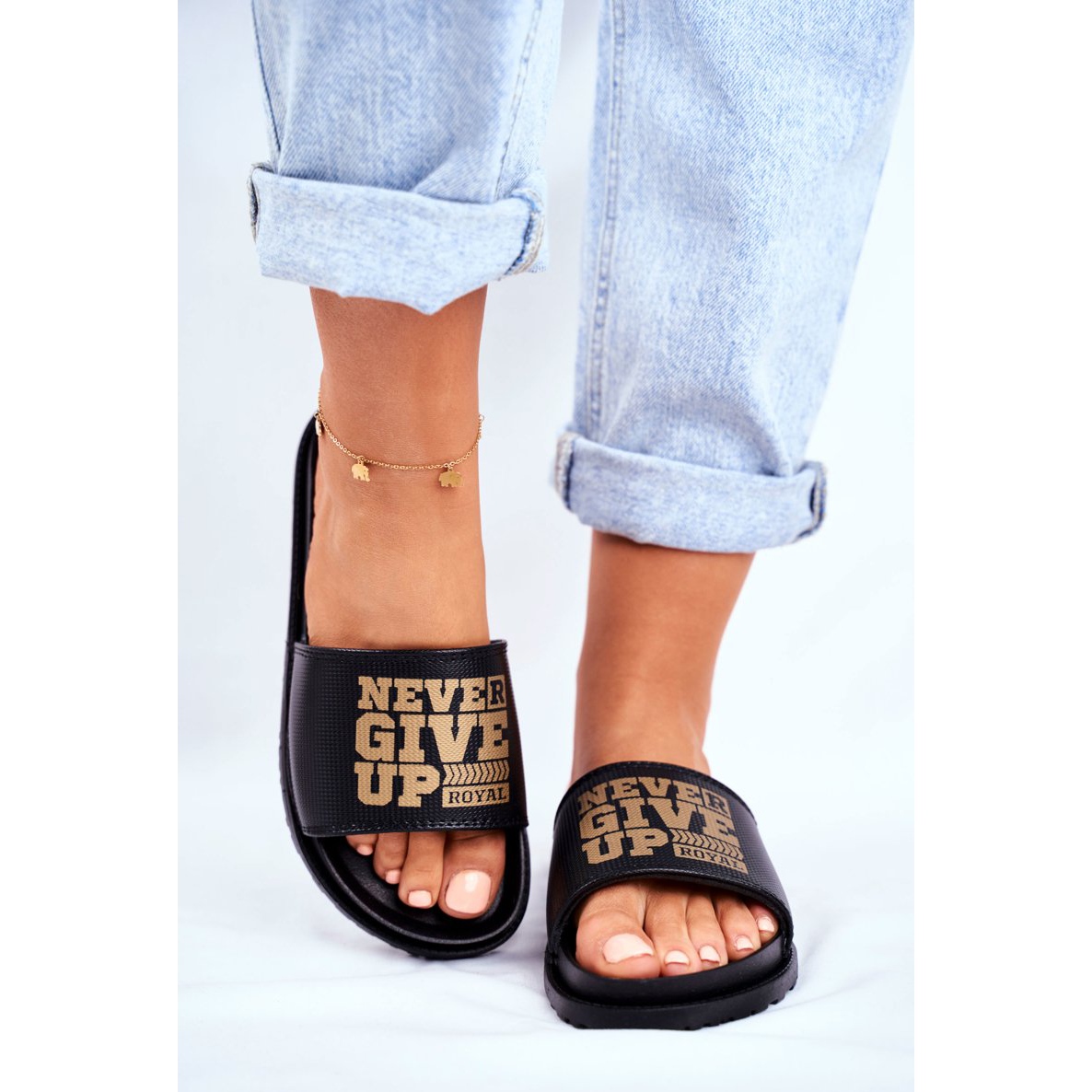 Details: ADY Damen Hausschuhe Never Give Up2 Gold Schwarz
