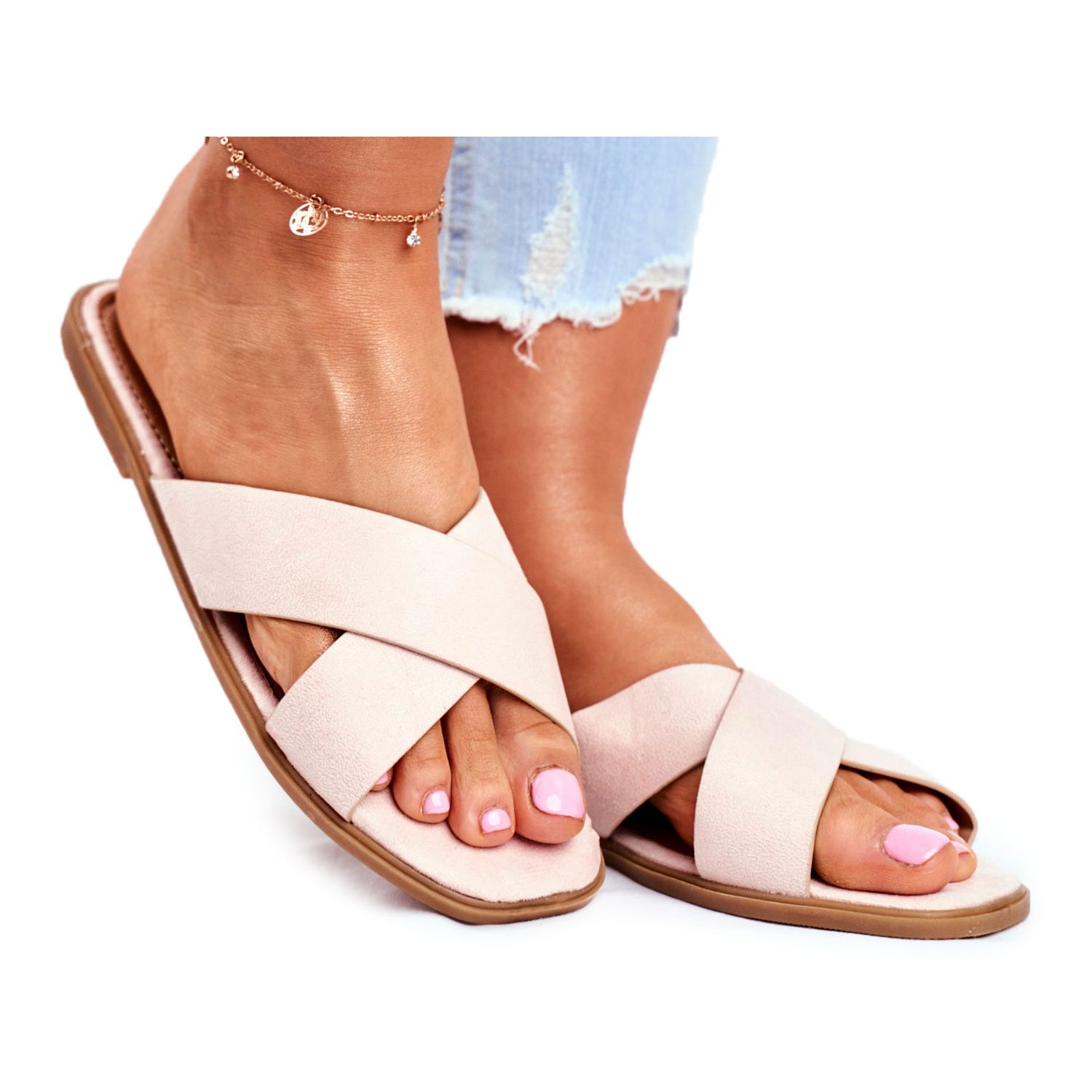 Details: Damen Hausschuhe, Riemen, Kreuz Beige Philippinen