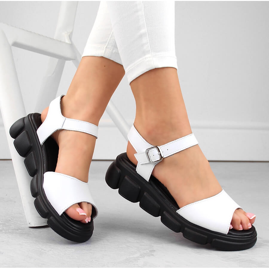 Details: Damen-Keilsandalen aus Leder, weiß, Vinceza 7884