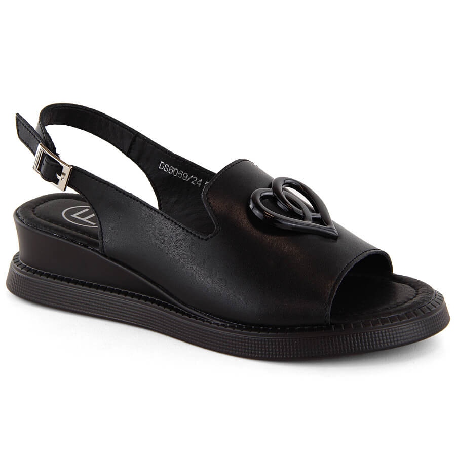 Das Modell DS6069 zeichnet sich durch einen klassischen Schnitt und die schwarze Farbe aus, was es zu einer universellen Ergänzung für jedes Outfit macht. Die Innenseite der Sandalen ist mit einer weichen Lederdecksohle ausgestattet, die den ganzen Tag über für Komfort sorgt, und die Keilhöhe von 4,5 cm sorgt für Eleganz, ohne die Füße zu belasten.
