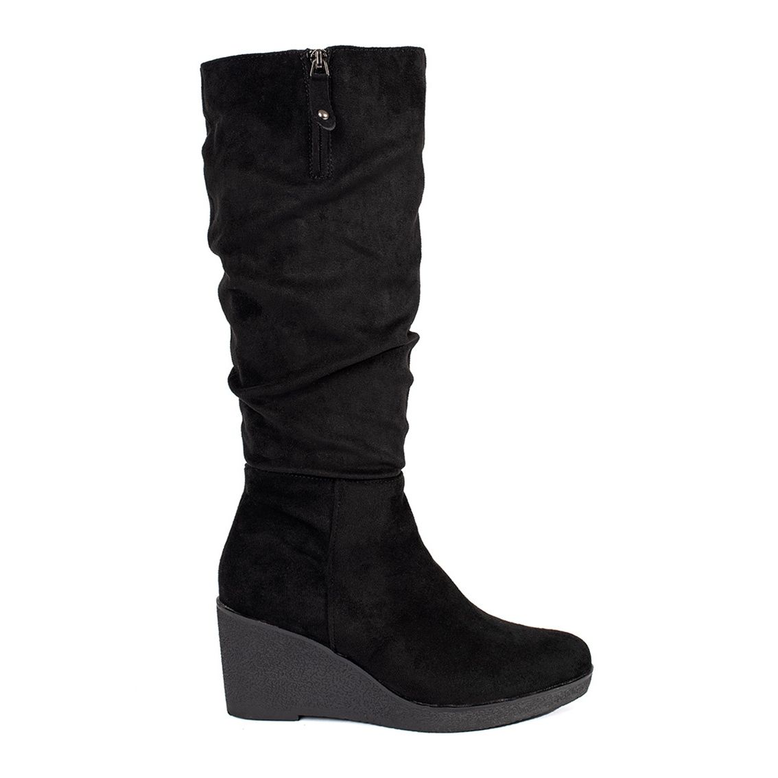 Details: Damen-Keilstiefel aus schwarzem Wildleder