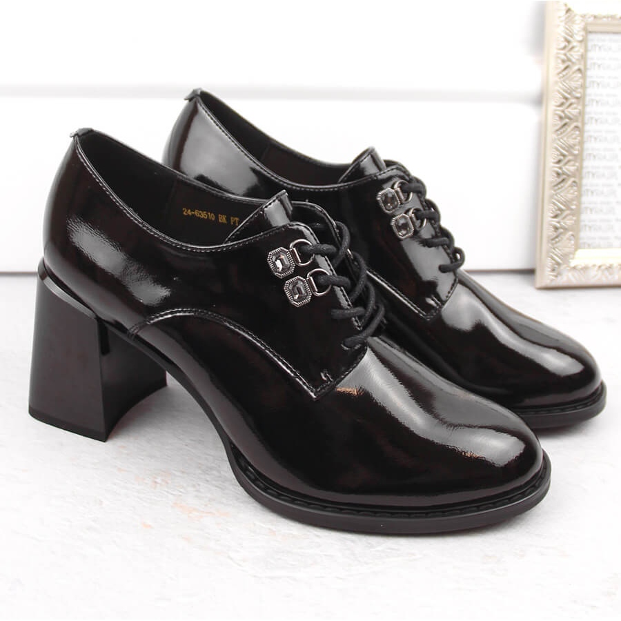 Details: Damen-Lacklederschuhe mit dekorativem hohem Absatz, schwarz Vinceza 63510