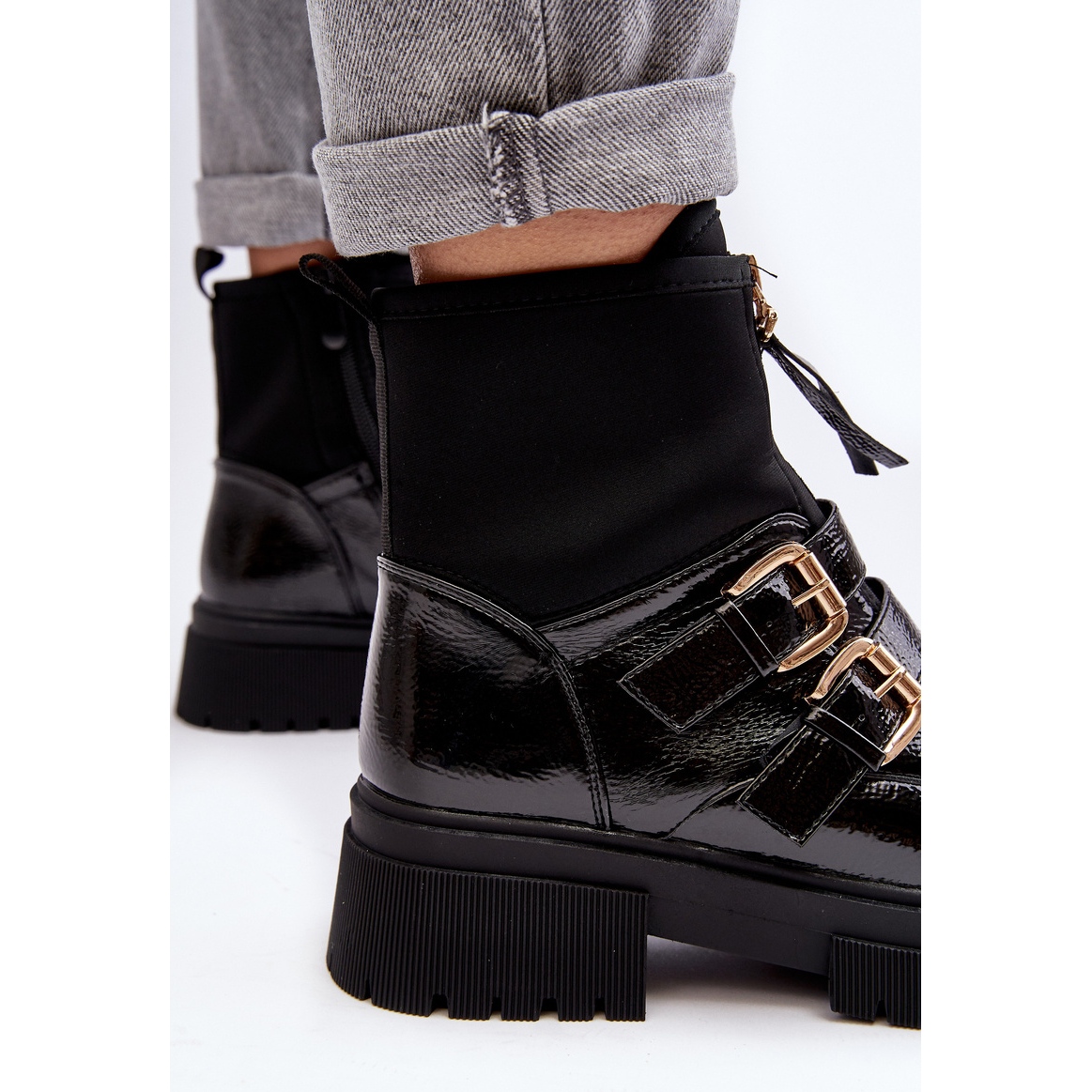 Besonderes Augenmerk wird auf zwei Reißverschlüsse und stilvolle Riemen mit goldenen Schnallen gelegt, die nicht nur Charme verleihen, sondern auch das Anziehen der Stiefel erleichtern. Die Schuhe haben abgerundete Zehen, die derzeit in der Damenmode ganz oben stehen.
