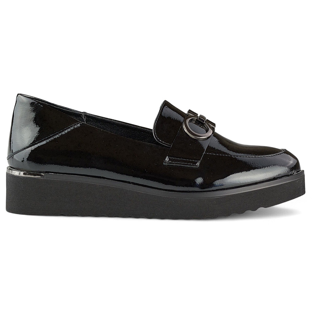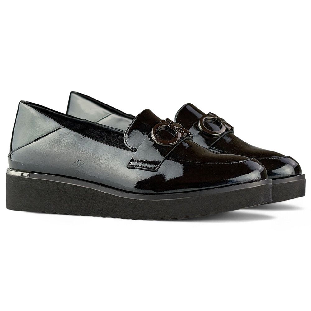 Entdecken Sie Eleganz und Komfort in einem! Lackierte Frauenschuhe auf einem niedrigen Keil sind eine gute Wahl für Frauen, die Stil mit Komfort kombinieren möchten. Diese Schuhe aus hochwertigem, lackiertem ökologischem Leder in einer klassischen schwarzen Farbe werden auf jeden Fall die Aufmerksamkeit auf sich ziehen und jedem Styling Stil verleihen.