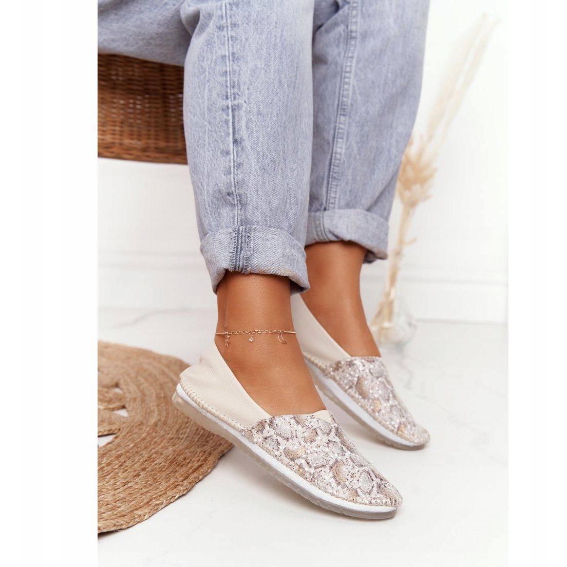 Sie wurden sorgfältig aus Naturleder handgefertigt, was ihre Haltbarkeit und Widerstandsfähigkeit im täglichen Gebrauch garantiert. Der beige Hintergrund mit goldenen Akzenten zieht nicht nur die Blicke auf sich, sondern verleiht den Schuhen auch einen luxuriösen Charakter. Der zarte Glanz von Gold eignet sich sowohl für den Tages- als auch für den Abendlook.