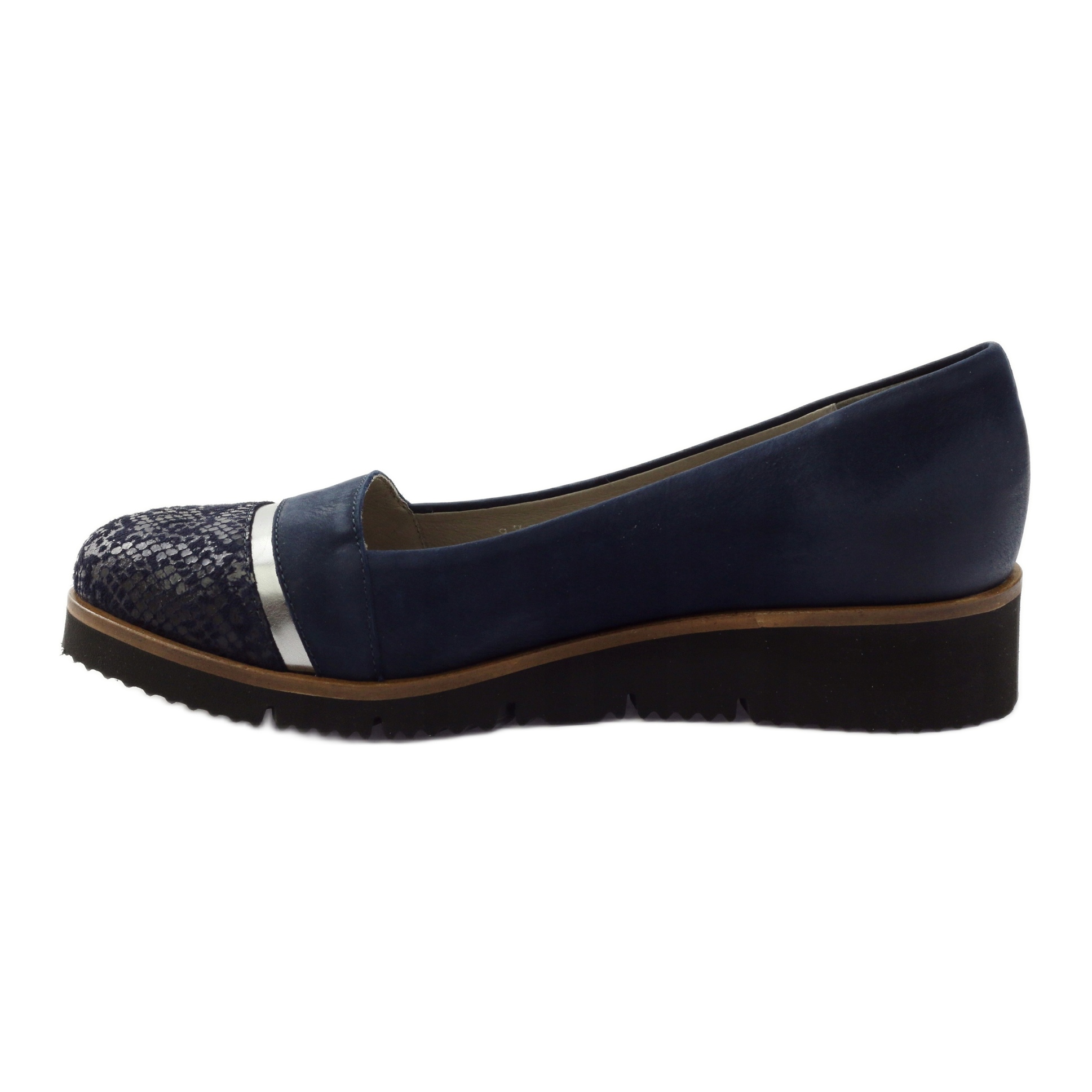 Klassische Pumps der polnischen Marke Edeo, Modell 2325, vereinen Eleganz mit Alltagskomfort. Sie bestehen aus natürlichem Nubukleder mit einem tiefen Marineblau-/Blauton und eignen sich perfekt für die Arbeit und formelle Meetings sowie für alltägliche Ausflüge. Die runde Spitze und die weiche Innensohle aus Leder sorgen dafür, dass Ihre Füße den ganzen Tag über bequem sind, und das Slip-on-Design erleichtert das schnelle Anziehen.