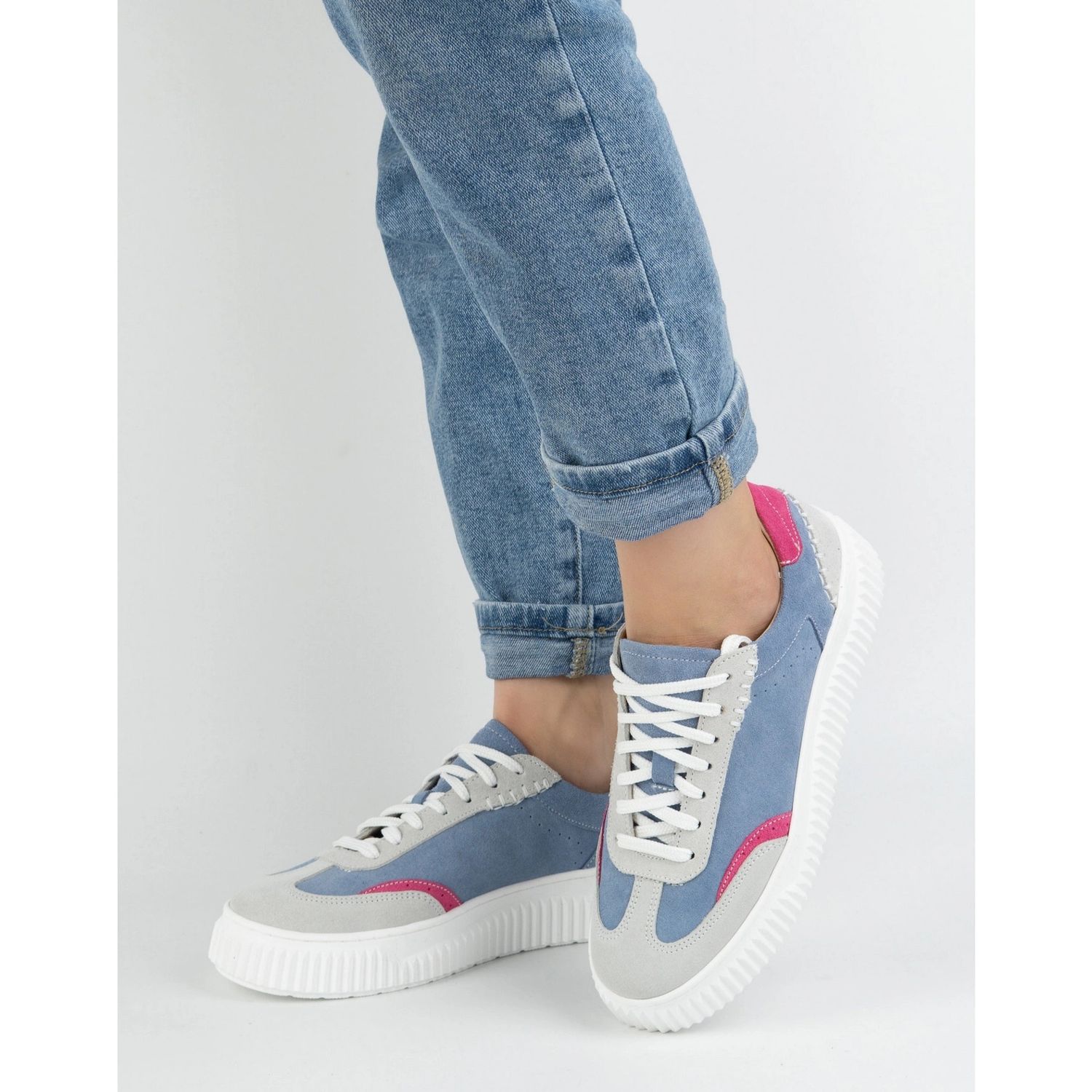 Dank der soliden, hohen Plattform verleihen diese Turnschuhe der Figur Leichtigkeit, und ihre dynamische Linie macht sie zu einem Muss in jeder Modegarderobe. Mode blaue Farbe lässt Ihre Stylisationen Frische und Charakter gewinnen und passen sowohl den täglichen als auch den kostenlosen Stadt -Look perfekt.