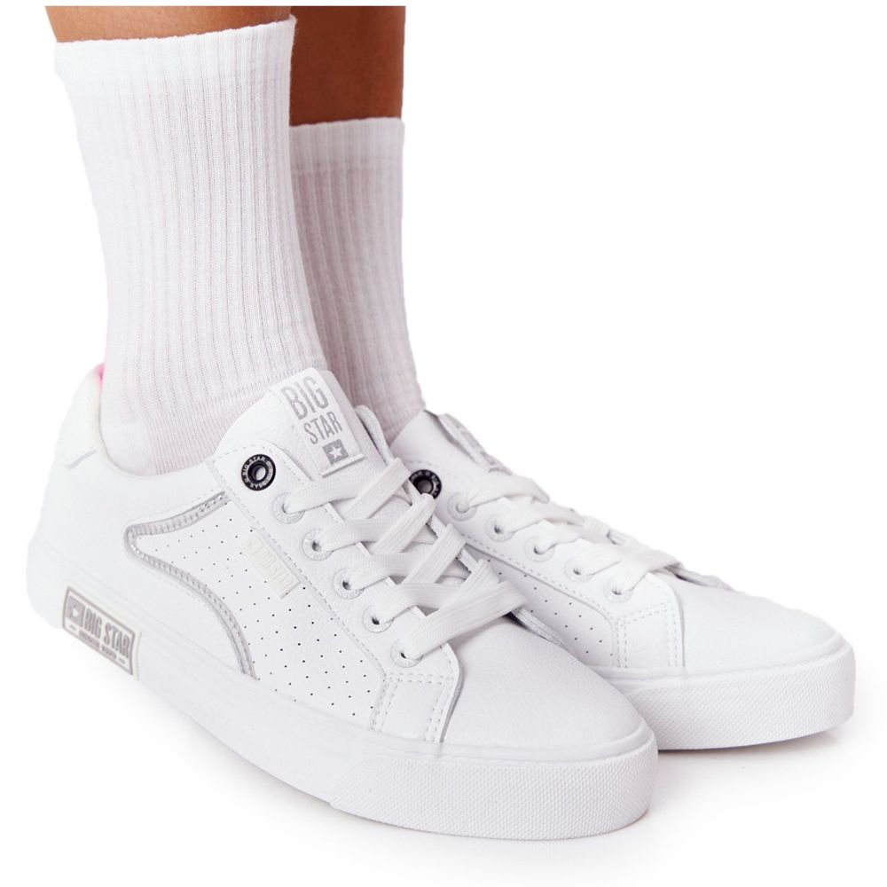 Details: Damen Leder Sneakers Big Star HH274075 Weiß und Silber