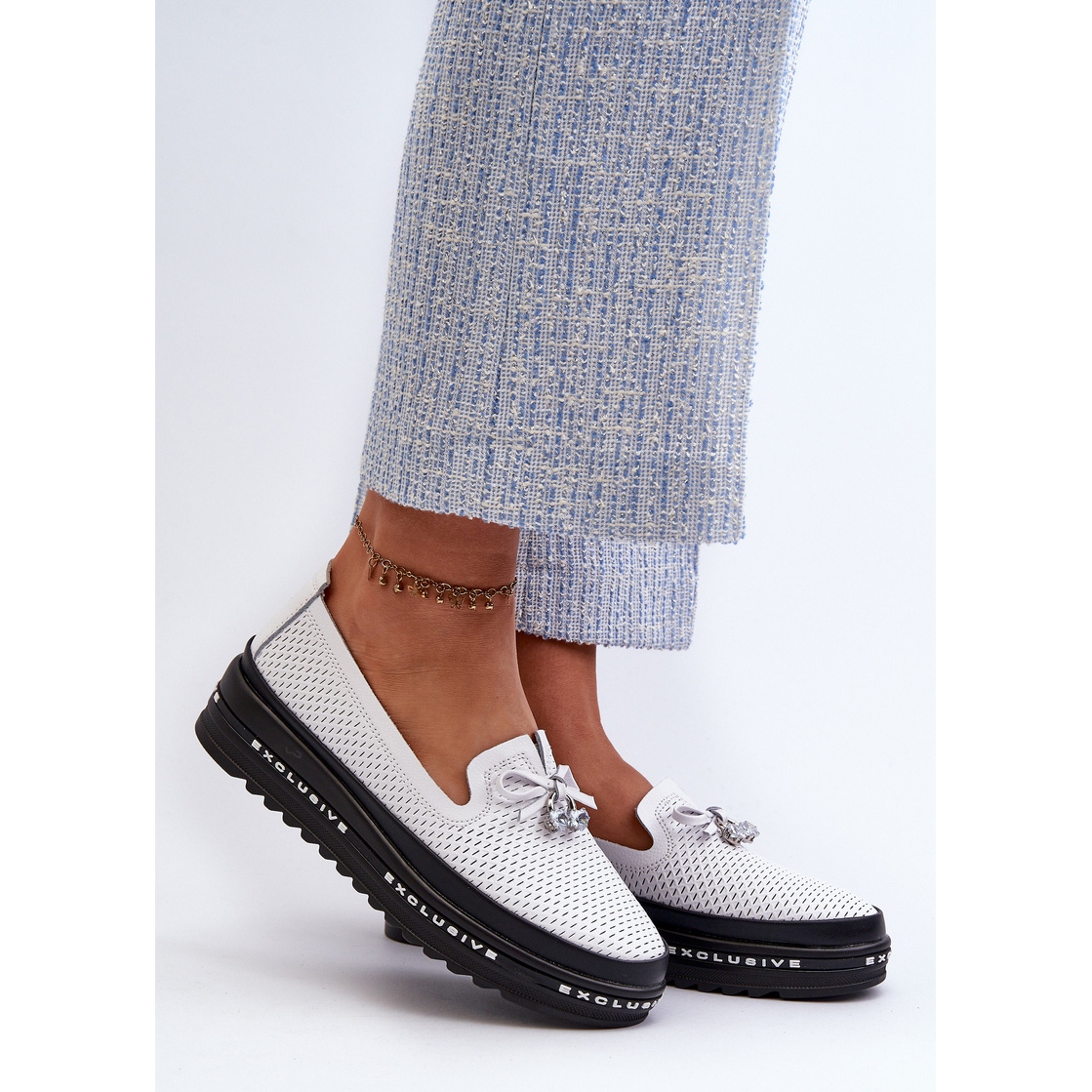 Details: Damen-Ledermokassins auf der S.Barski LR400-Plattform, Weiß