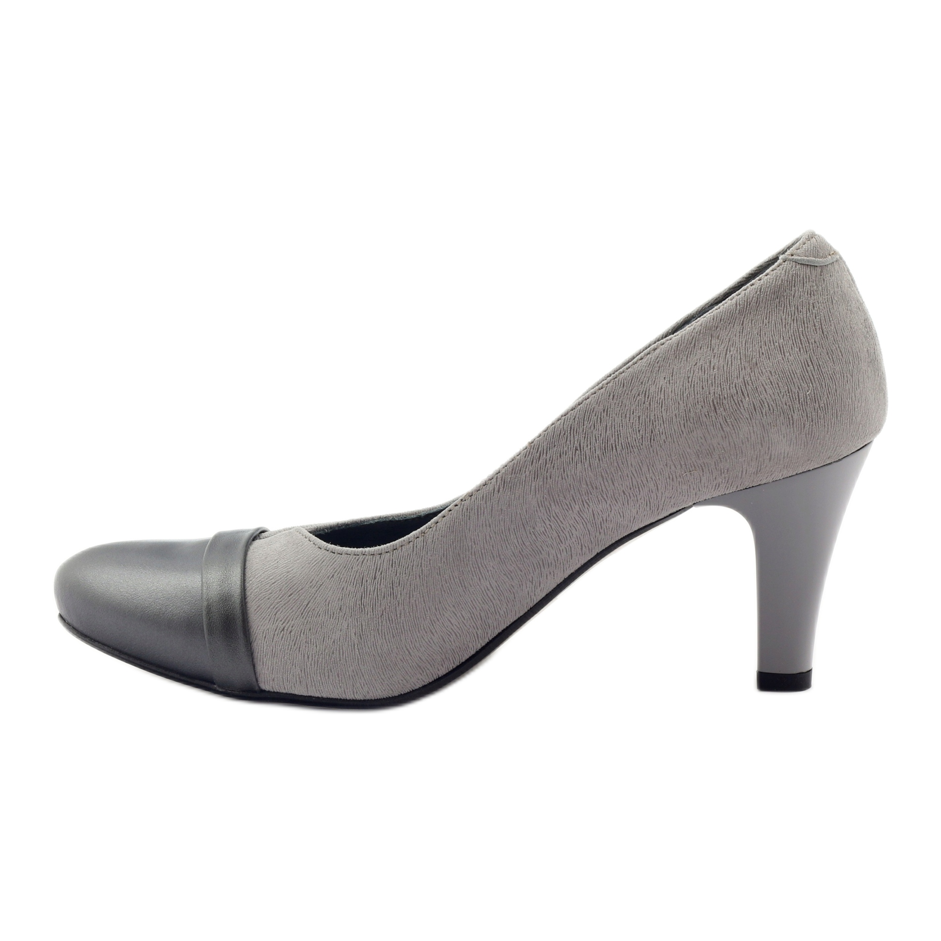 Klassische Pumps der polnischen Marke Espinto in der universellen grauen Farbe sind ein Vorschlag, der sowohl bei der Arbeit als auch bei Feiern gut funktioniert. Komplett aus Naturleder mit zarter Prägung gefertigt, vereinen sie Eleganz mit Alltagskomfort.