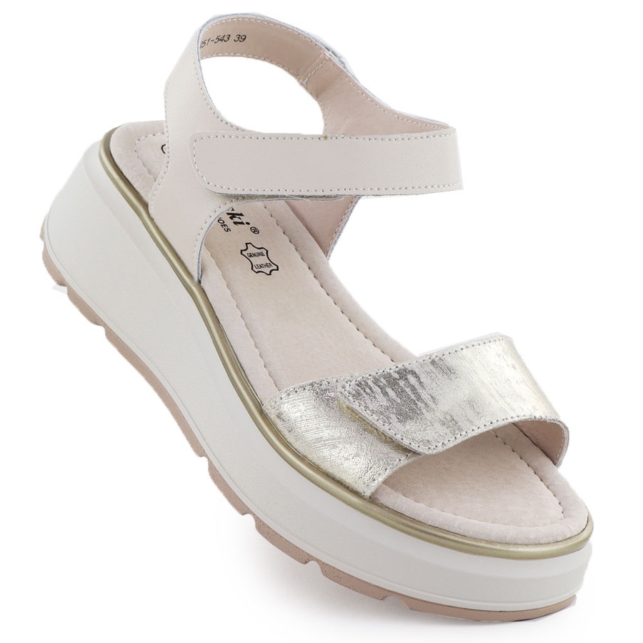 S.Barski S.Barski Damen-Ledersandalen für Klettverschlüsse Platforma Złote S. Barski LR51-543 golden